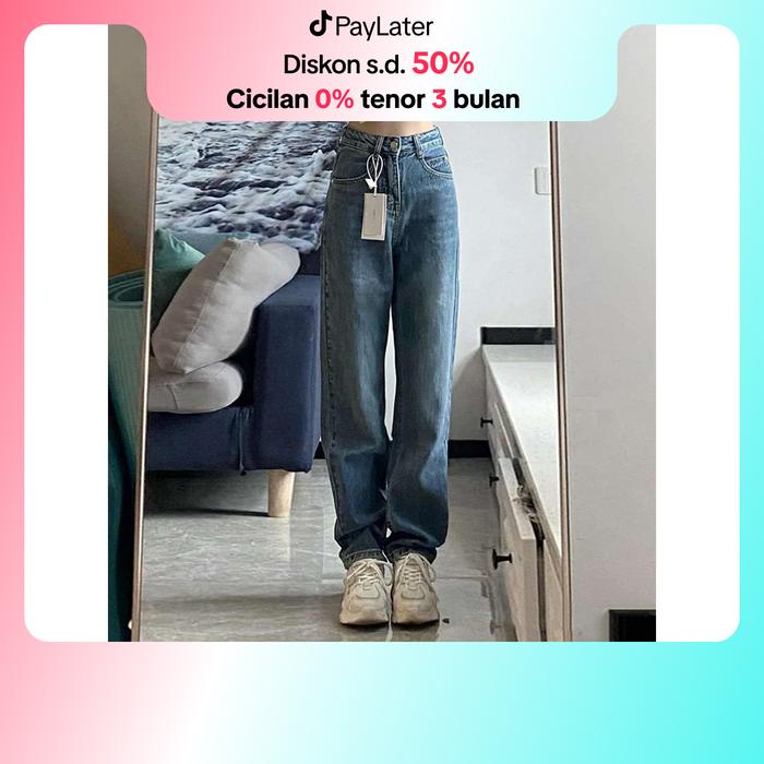 LULU-JEANS NEW KOREAN STYLE HIGH WAIST LOOSE MURAH CELANA JEANS PANJANG WANITA - PREMIUM BIRU RETRO8563, S