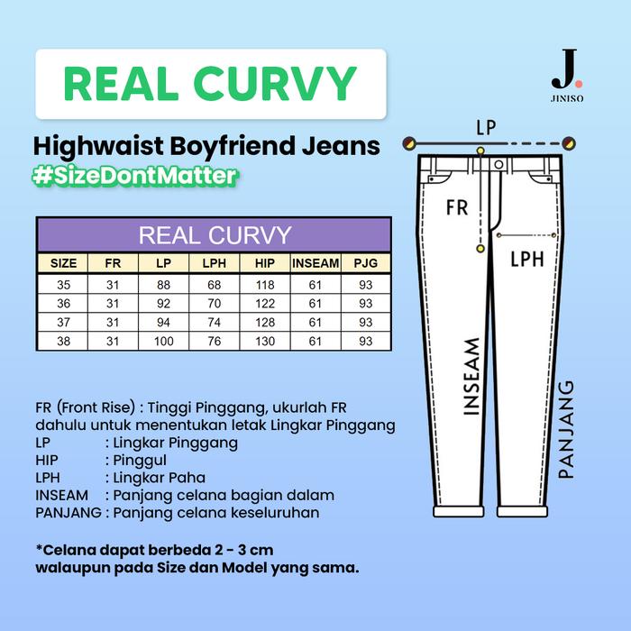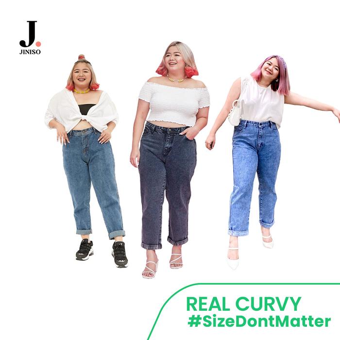 REAL CURVY - JINISO JUMBO BOYFRIEND CELANA JEANS WANITA WARNA DENIM HIGHWAIST - 1302, 35