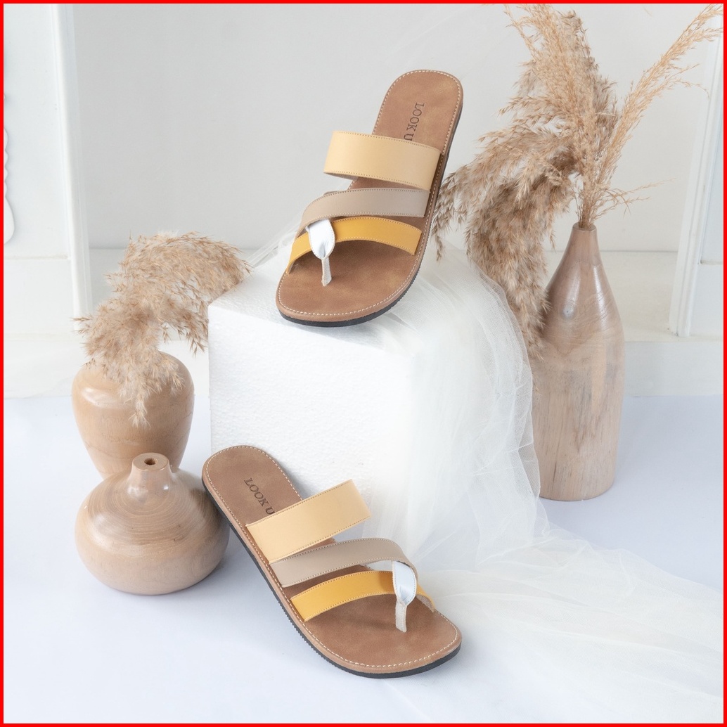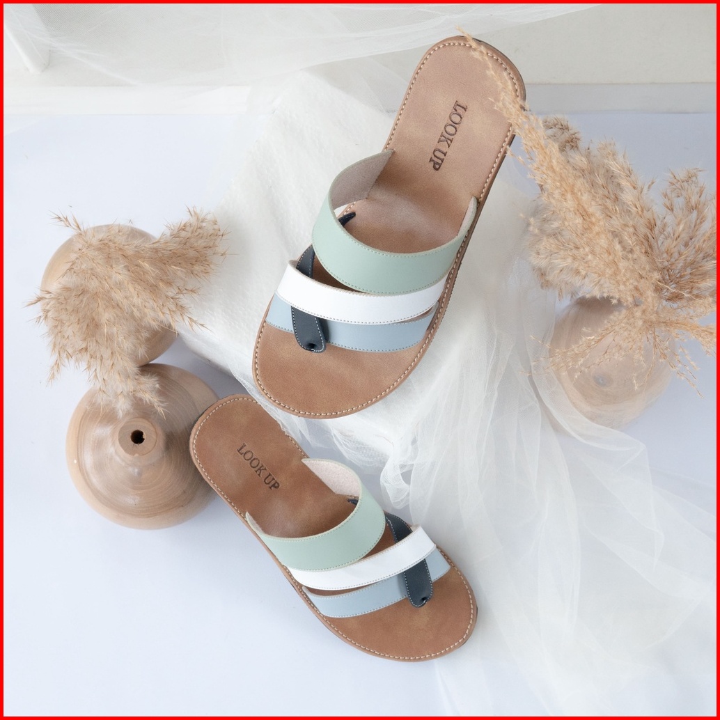 Look Up Aura Sandal Wanita Sandal Flat Teplek Motif Kombinasi Flat Color Series