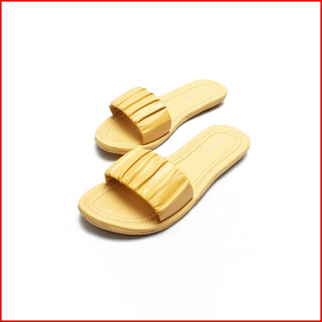 Widuria Look Up Sandal Kulit Wanita Flat Teplek Slip On Paster Color Mocca Ruffle Flat Series