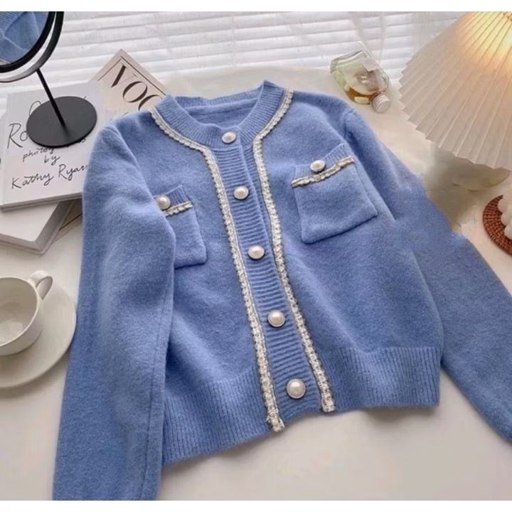 CARDIGAN WOL RAJUT WANITA KNITWEAR KOREAN STYLE LIST FULL MUTIARA CARDIGAN RAJUT TREND FASHION KEKINIAN TERLARIS