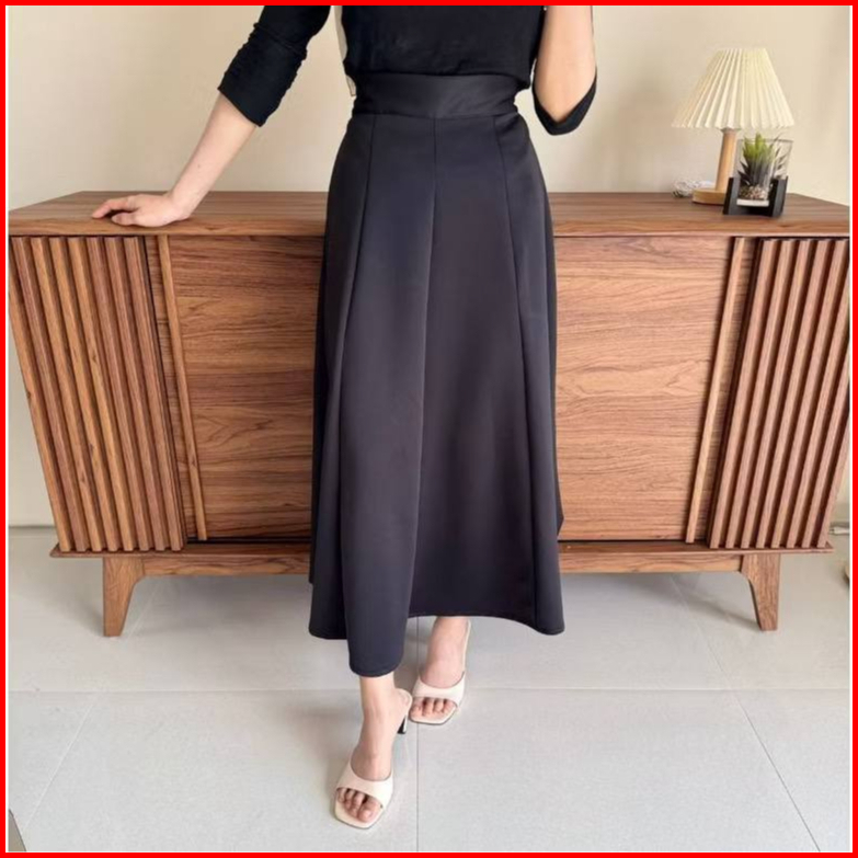 Audy Skirt - Korean Loose Maxi Skirt Rok Wanita Anti Kusut Polyester - Rok Flare Wanita - Rok Basic Polos - Maxi Rok Pan