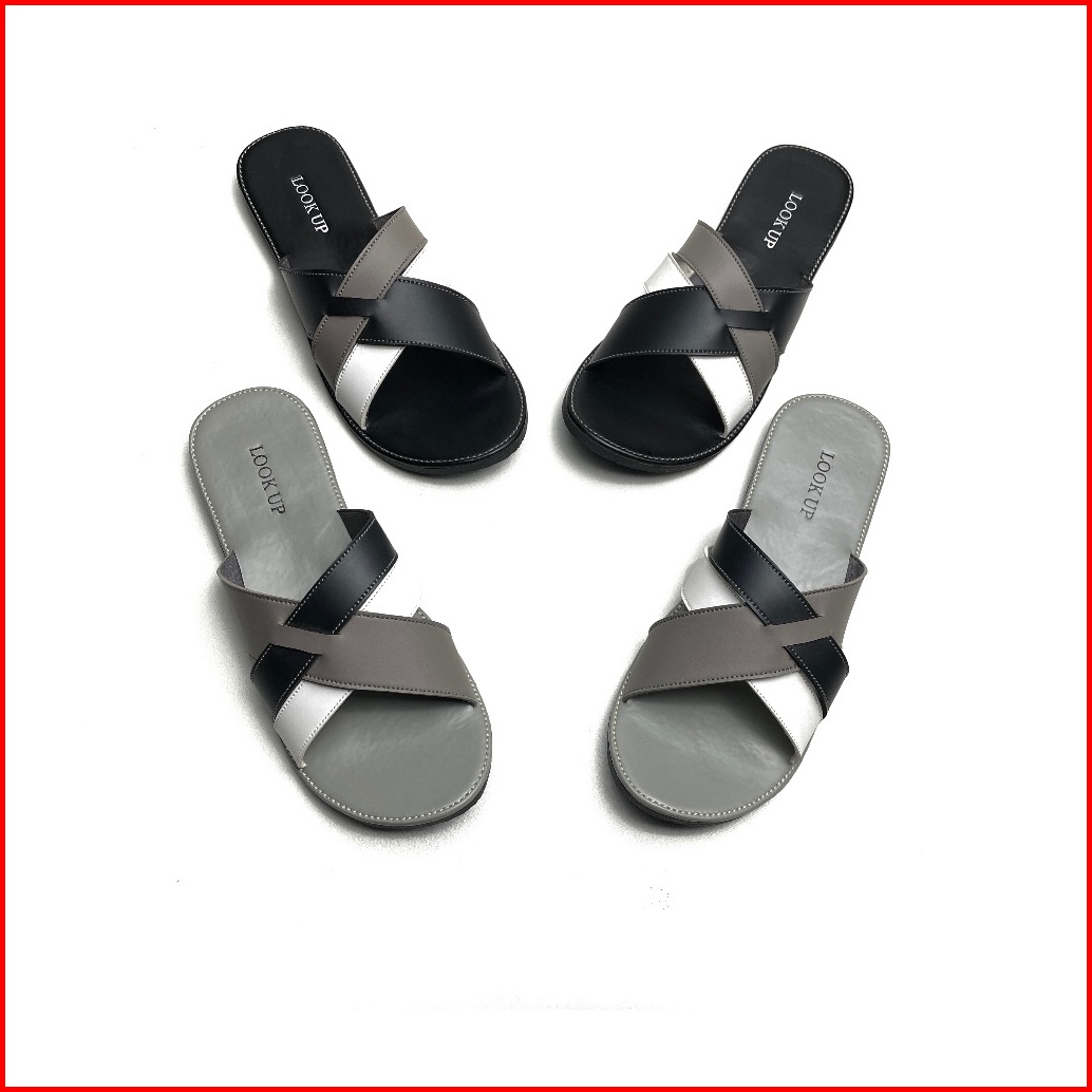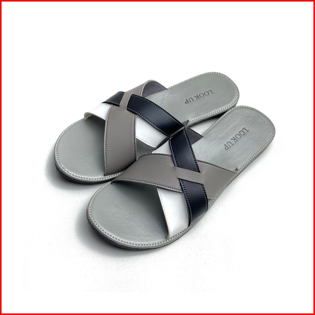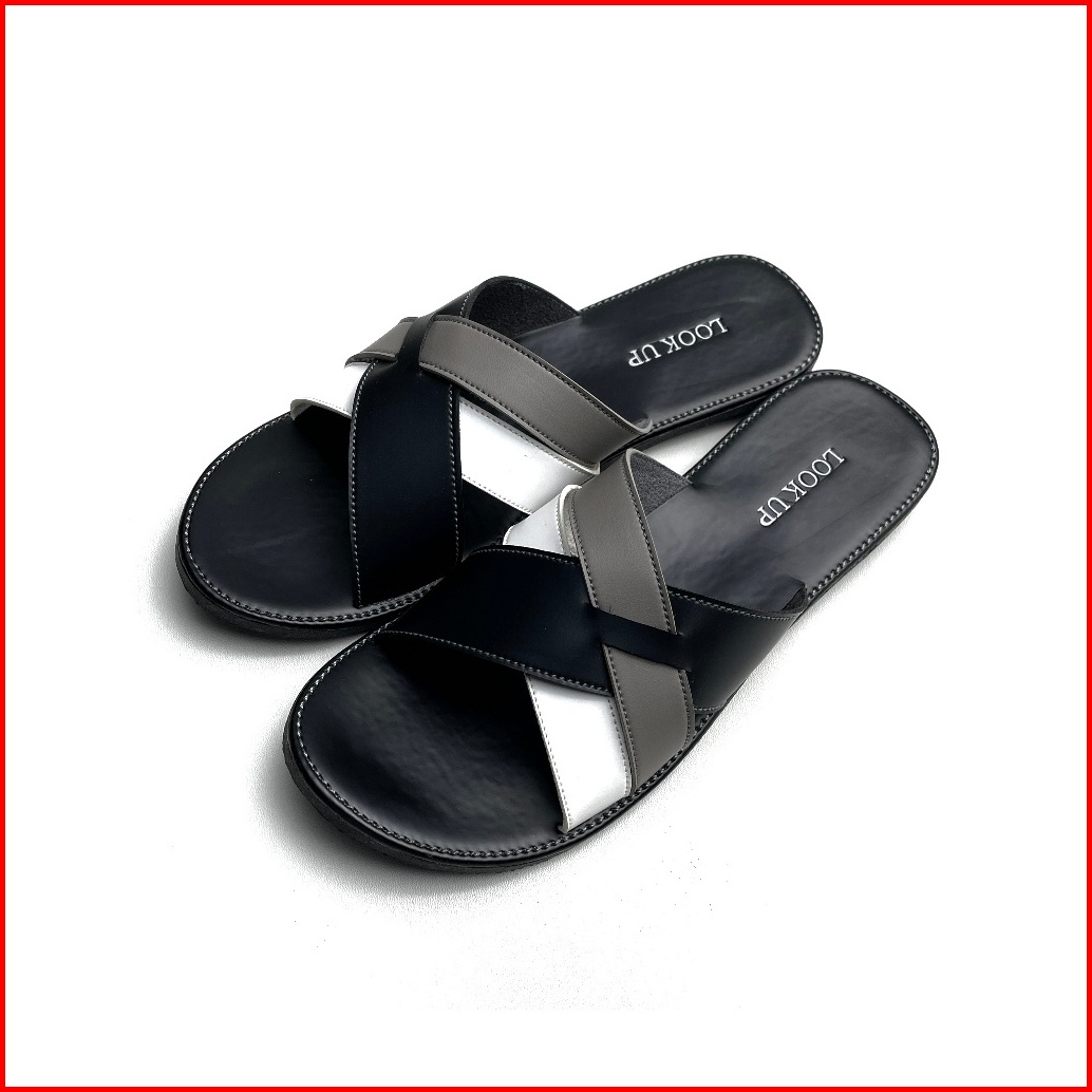 Rikka Monochrome Lookupshoes Sandal Wanita Slop Kokop Slide Slip On Anti Licin Sol Karet Teplek Motif Hitam Abu Kombinas
