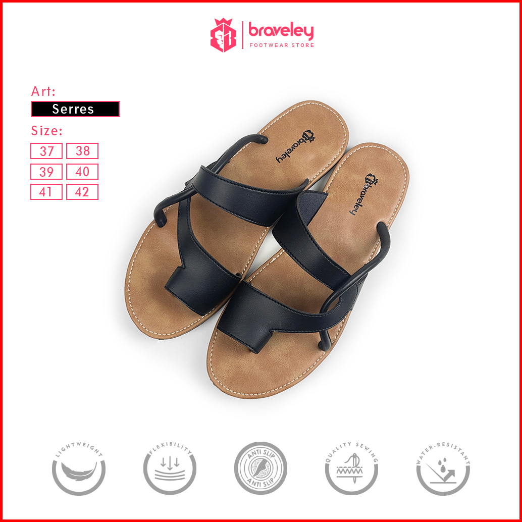 Braveley Serres - Sandal Wanita Kulit Sintetis Hitam Elegan Model Jepit Jempol Kekinian