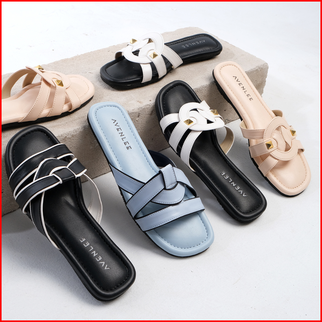 Sandal Flat Wanita Kekinian Model Slop Elegan Gaya Casual Empuk Sol Karet Tidak Licin Avenlee Fumi By Braveley