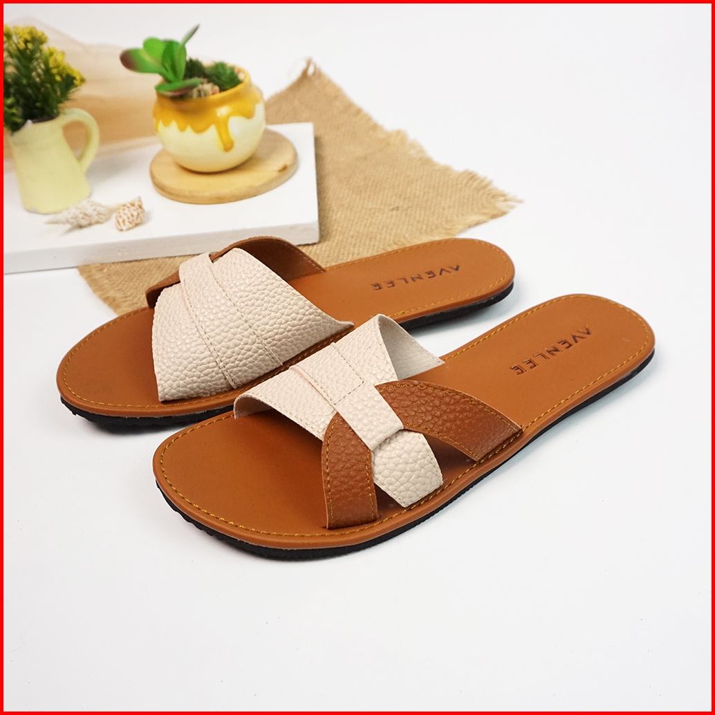Avenlee Rhea - Sandal Wanita Teplek Sol Karet Non Slip Model Casual Kulit Sintetis Motif Kulit Jeruk