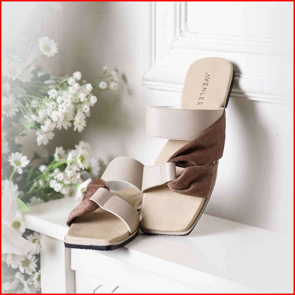 Avenlee Strappy - Sandal Wanita Flat Kasual Gaya Feminin Strap Kulit Pu Dan Pita Kain Sol Anti Licin