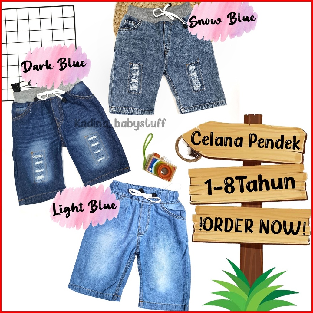 Celana Jeans Anak Laki-laki Terbaru Celana Pendek Snow Wash Celana Sobek Anak Usia 1-8thn
