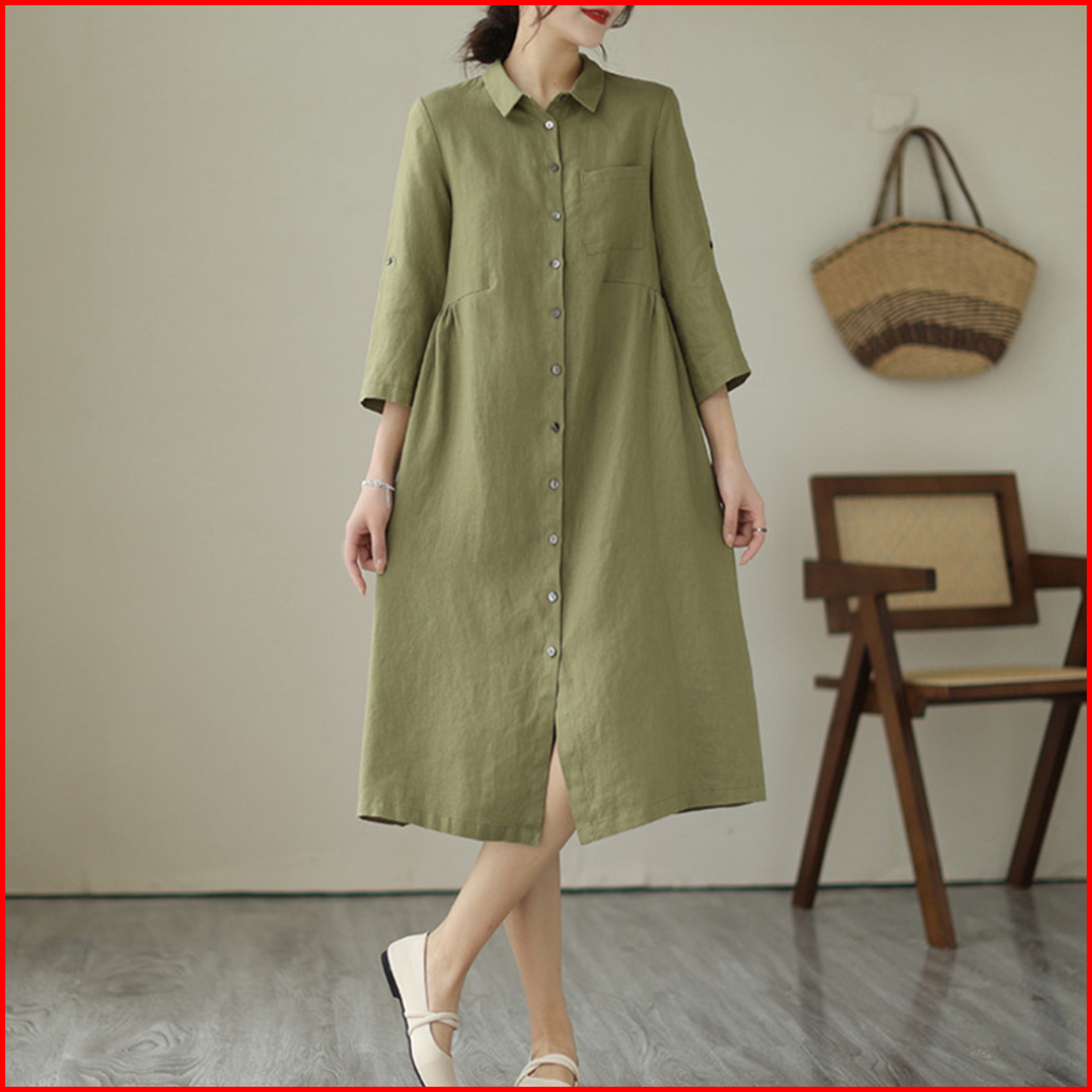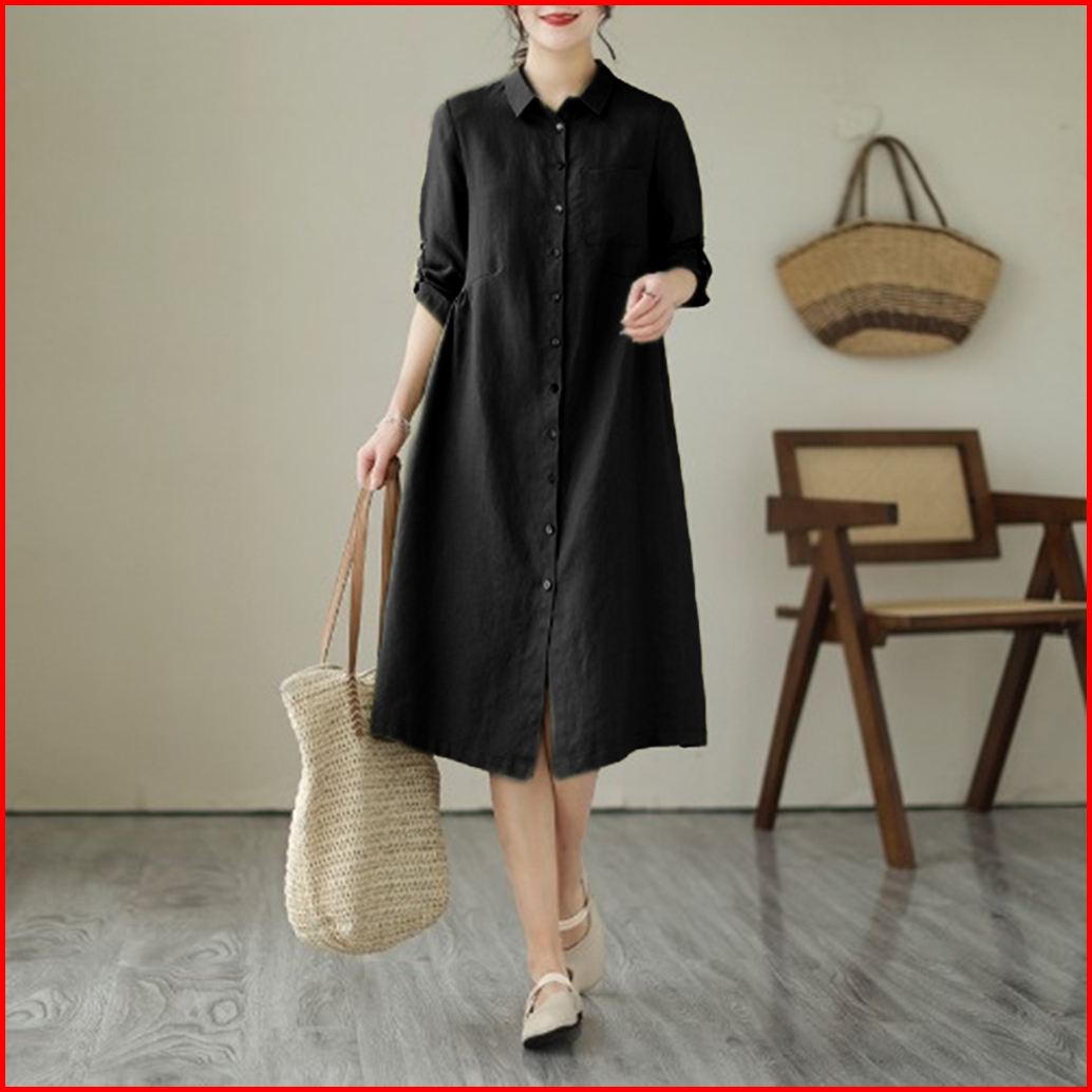 Alena Long Shirt Atasan Wanita Tunik Linen Lengan Panjang Korean Style Kekinian Modis Nyaman