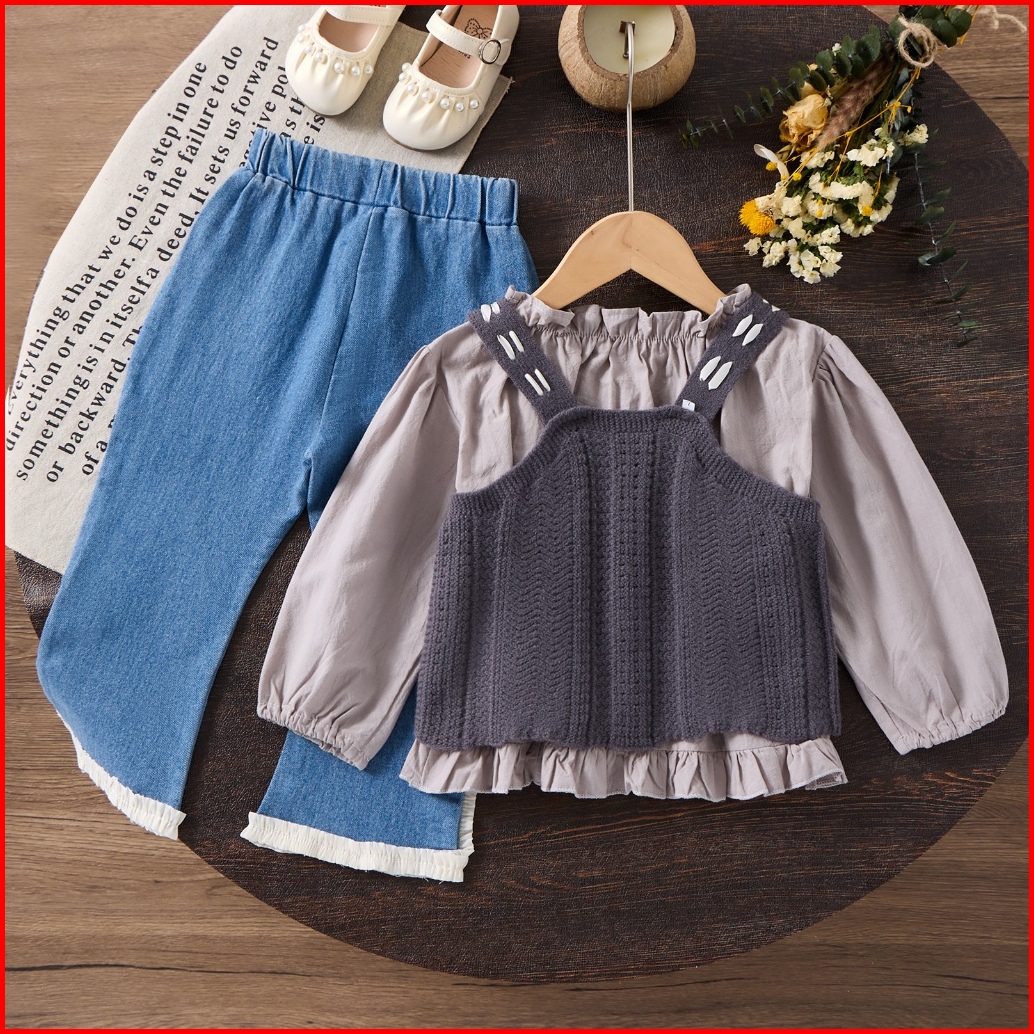 Kfcat Set Rompi Sweater Anak Perempuan 3in1 - Model Korea Terbaru 2025 Bahan Katun Nyaman Usia1-4thn