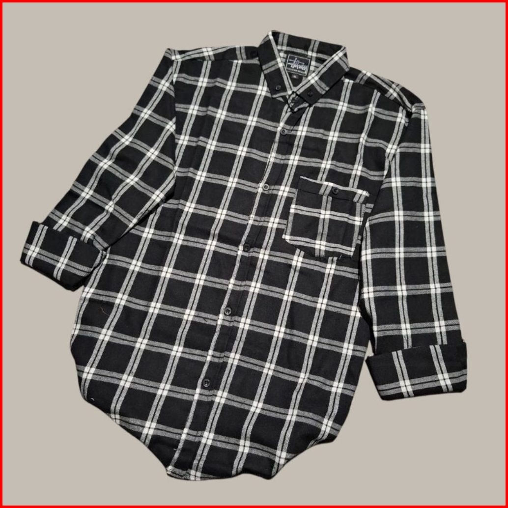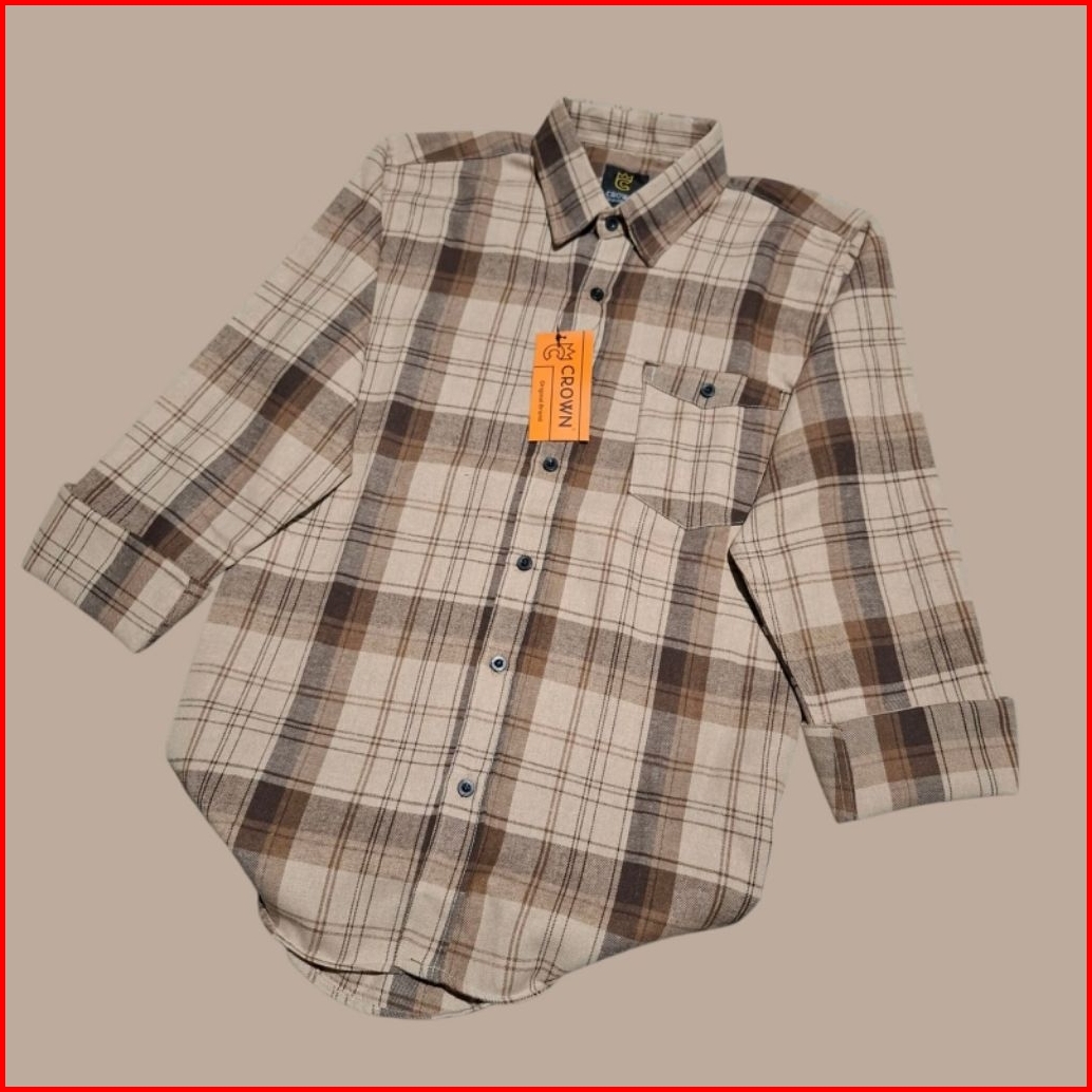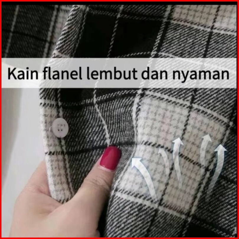 Kemeja Flanel Unisek Vintage Kotak Kotak Pria Wanita Lengan Panjang