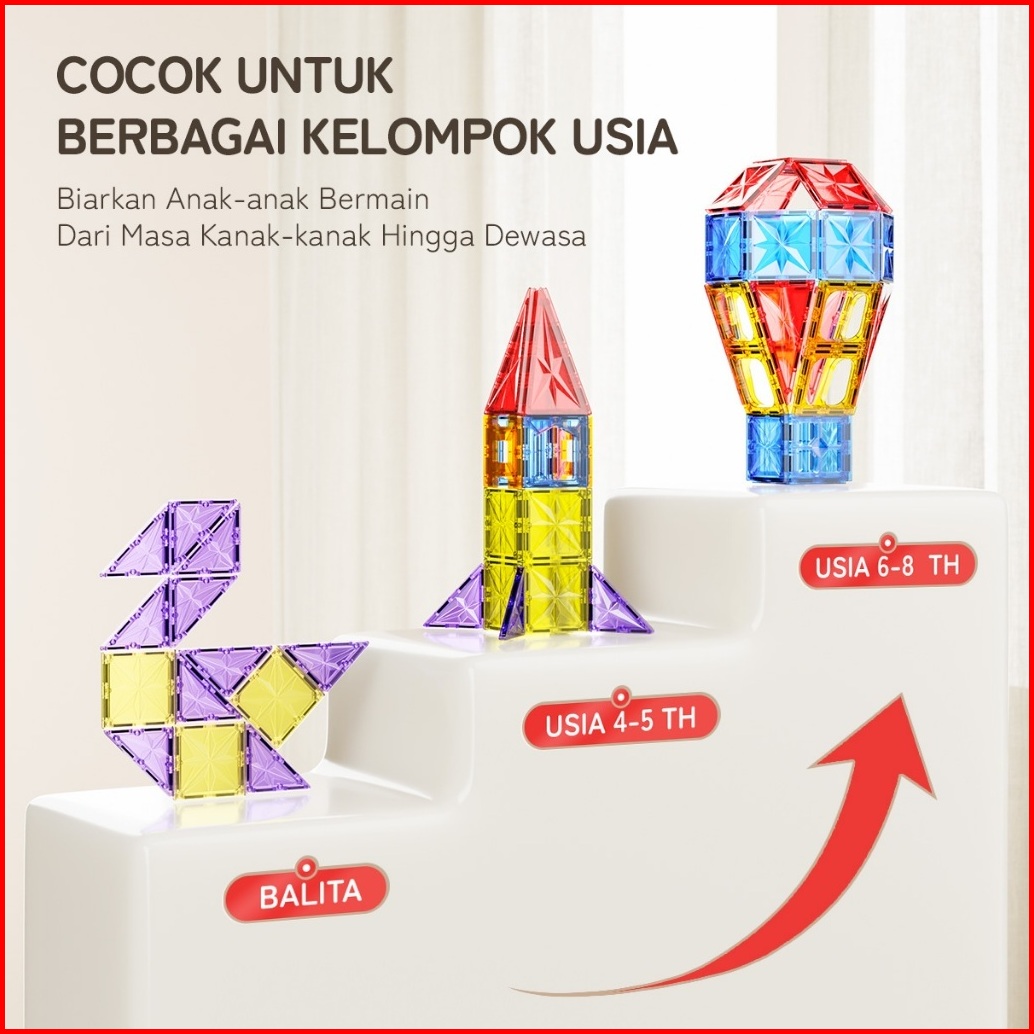 Momwell Magnetic Tiles Permukaan Berlian Blok Bangunan 4d Mainan Magnet 58pcs Puzzle Montessori
