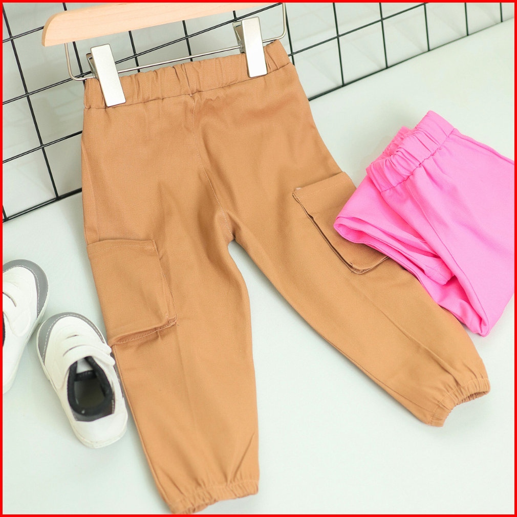 Kf Cat Setelan Baju Anak Perempuan Lengan Pendek Bahan Katun Premium Celana Kargo Style Usia 6 Bulan - 3 Tahun