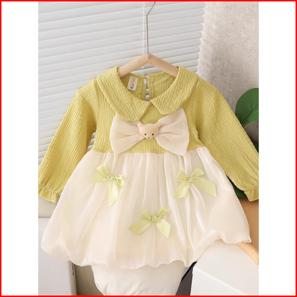 Kf Cat Dress Anak Perempuan Lengan Panjang Bahan Cringkle Korea Style Usia 1-4 Tahun