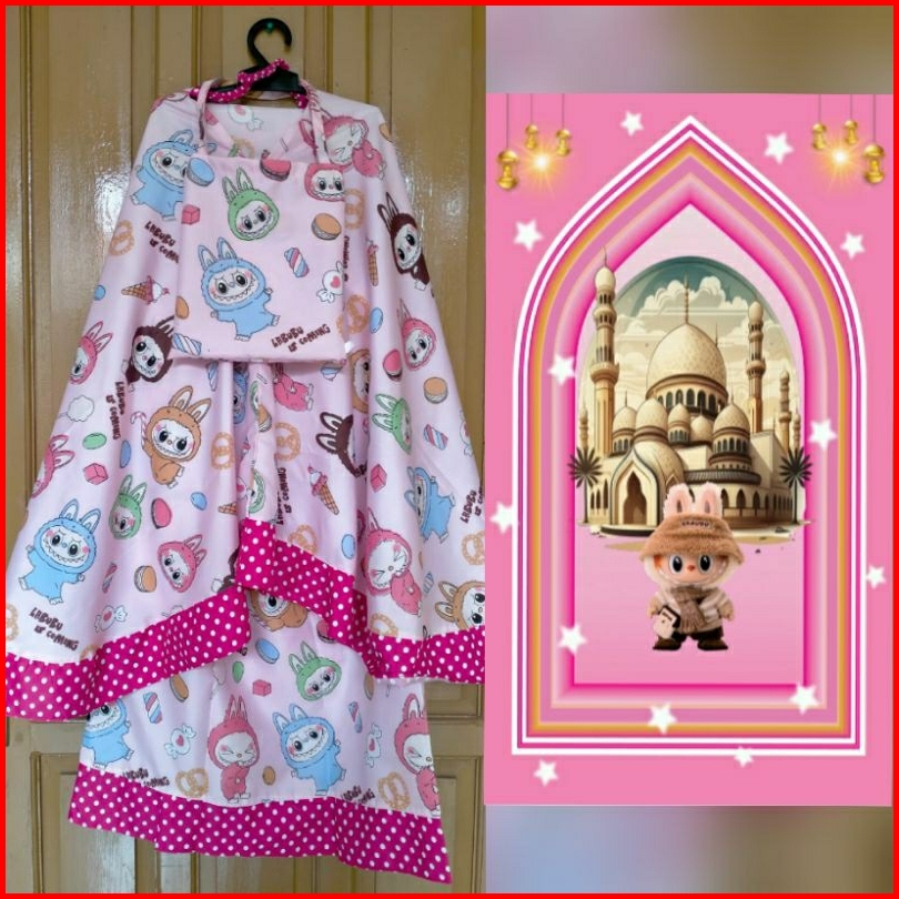 Mukena Dan Sajadah Labubu Usia 2-5 Tahun Pilih Motif