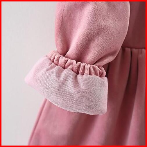 Kf Cat Girls Long-sleeve Corduroy Dress With Lace Ribbon Trim Korean Style Ages 1-5y