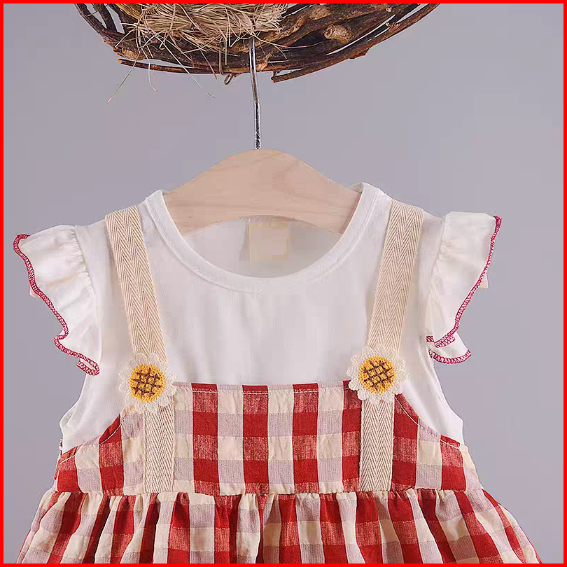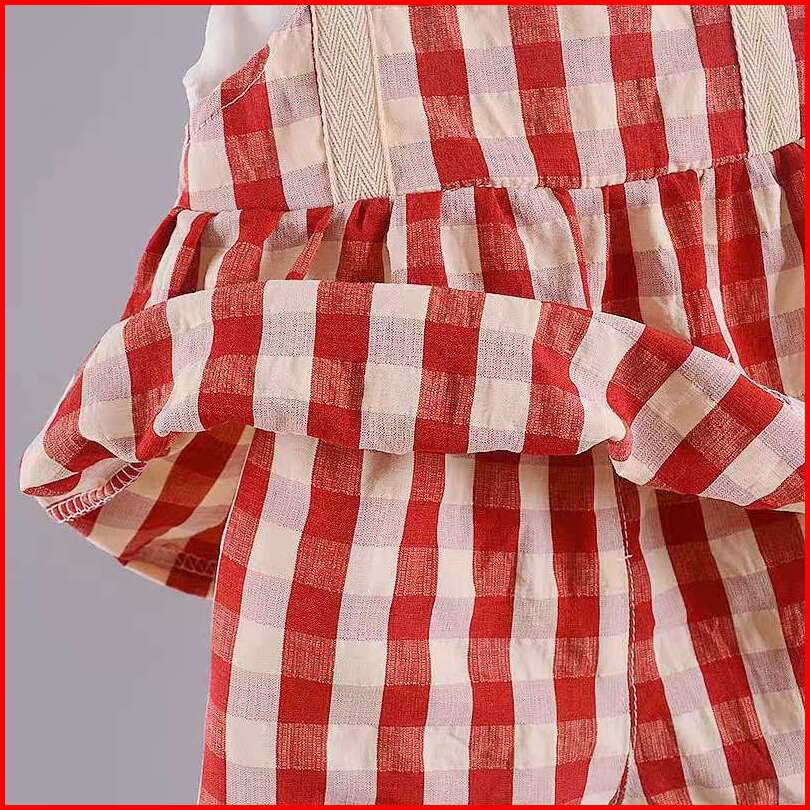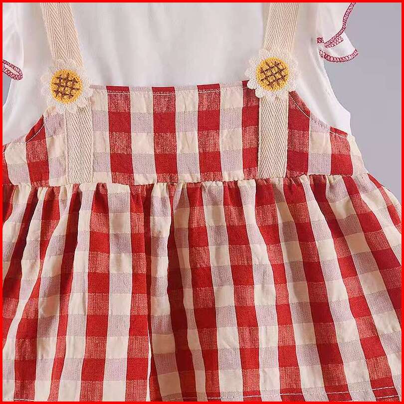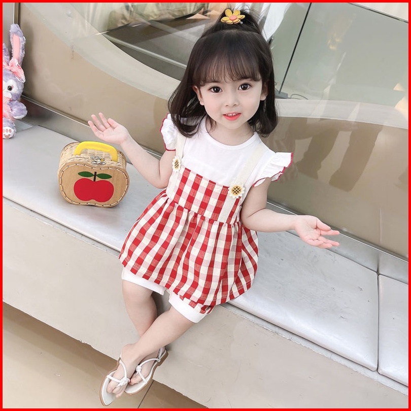 Kf Cat Setelan Baju Anak Perempuan Bahan Katun Bangkok Motif Kotak-kotak Korean Style Usia 1-4 Tahun