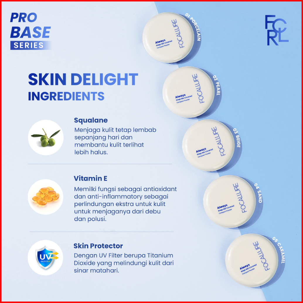 Focallure Always Keep Me Covered Compact Powder Soft Matte Cloud Skin Finish Makeup Hybrid Probase