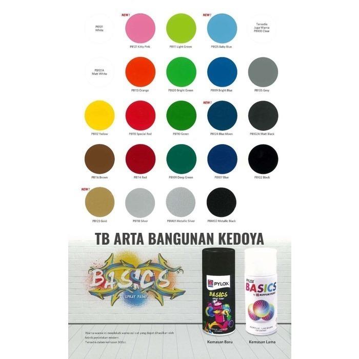 PB 100 Clear, PB 101 White, PB 101A Matt White, PB 102 Black, PB 102A Matt Black, PB 105 Grey, PB 106 Deep Blue, PB 107 Blue, PB 109 Deep Green, PB 110 Green, PB 111 Light Green, PB 112 Yellow, PB 113 Orange, PB 114 Red, PB 115 Special Red, PB 116 Brown, PB 118 Silver, PB 119 Bright Blue, PB 120 Bright Green, PB 121 Kitty Pink, PB 123 Gold, PB 124 Blue Moon, PB 125 Baby Blue, PB M-01 Metalic Silver, PB M-02 Metalic Black