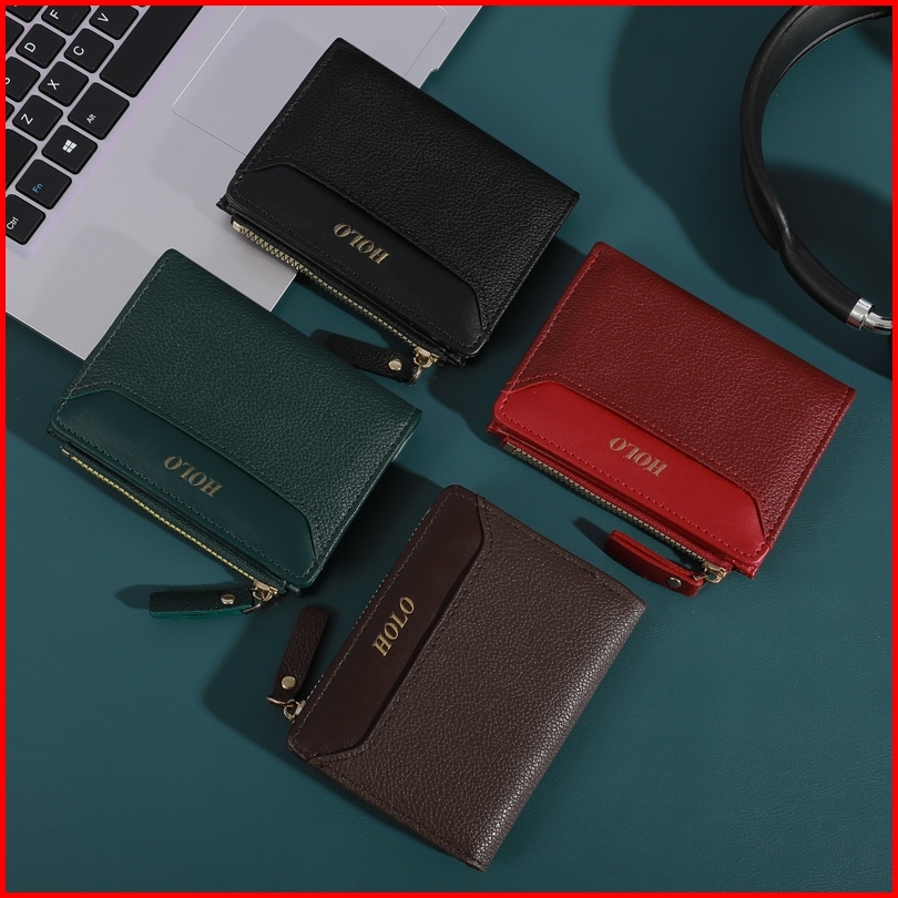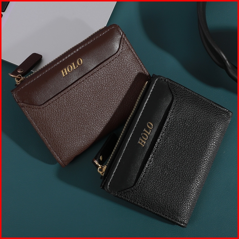 Holo Dompet Lipat Wanita Elegan Dompet Kartu Dan Uang Card Holder Dompet Kulit Kecil Hitam