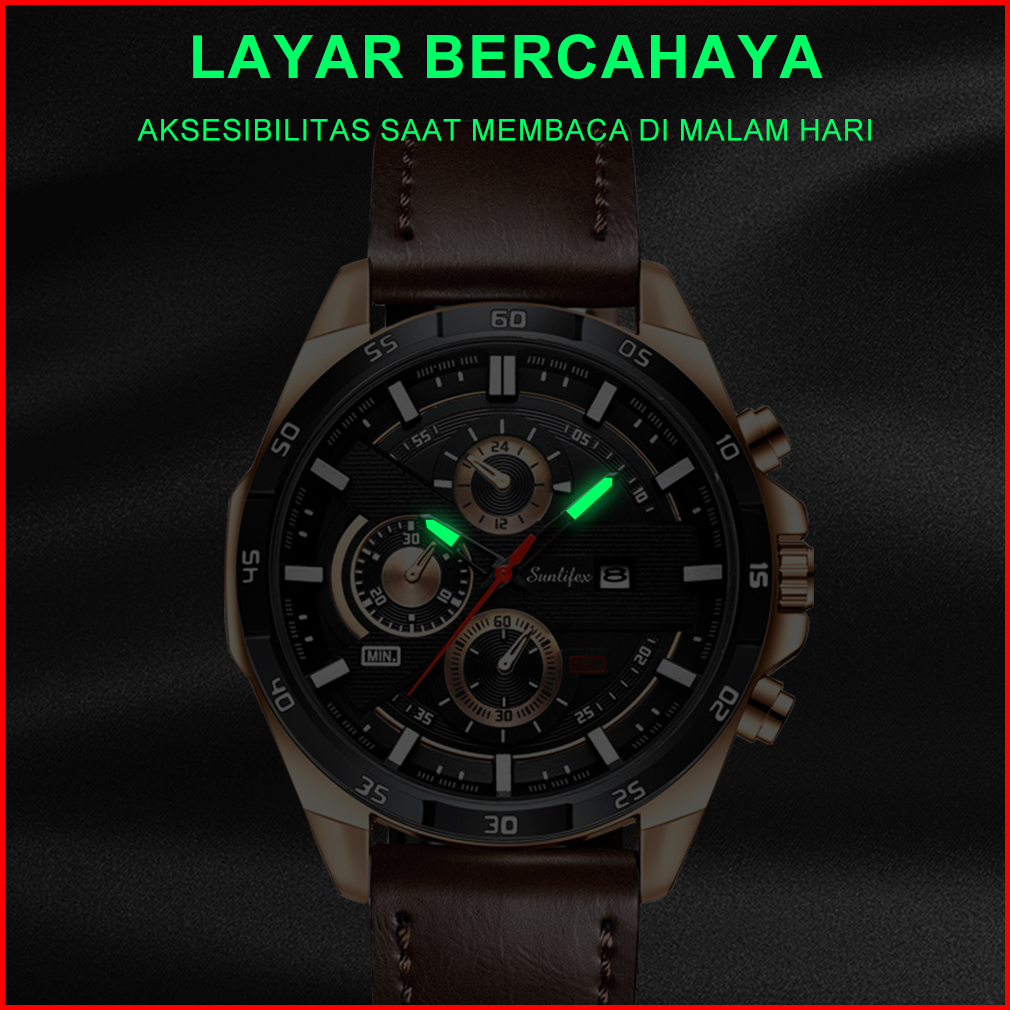 Sunlifex Jam Tangan Pria Original Olahraga Anti Air Pria Tali Kulit Kalender Luminous Jam Tangan Cowok Free Box Kartu