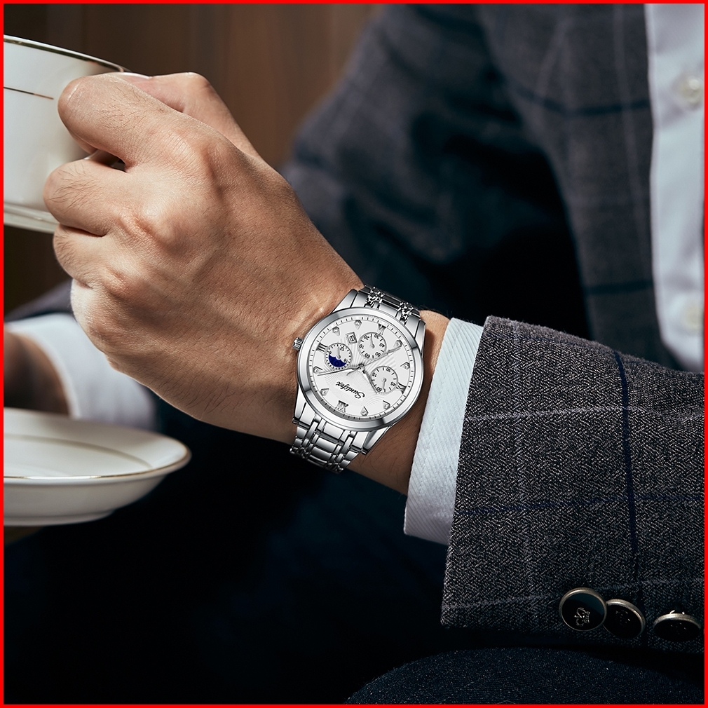 Sunlifex 9004a Jam Tangan Pria Tali Stainless Steel Anti Air Dial Bulat Bisnis Mewah Santai Cowok