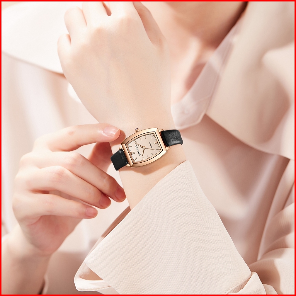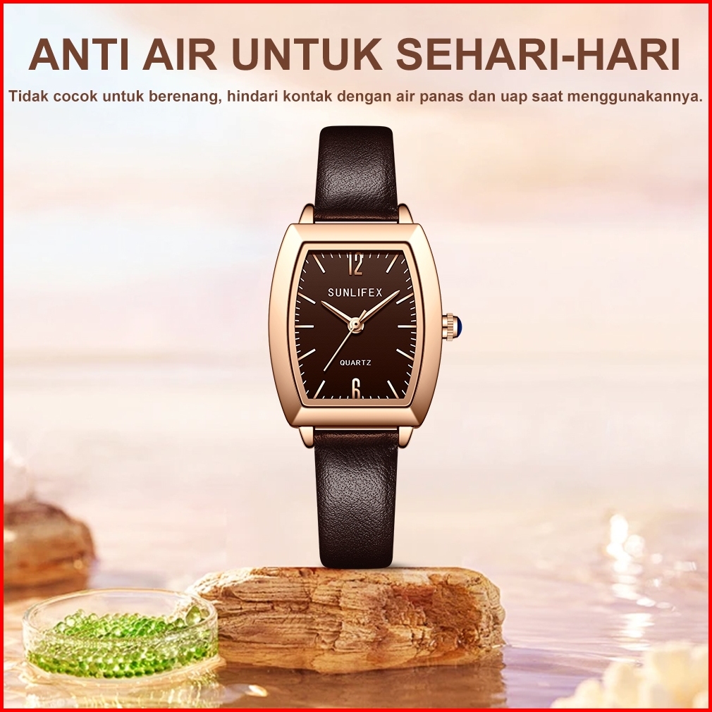 Sunlifex 6007 Jam Tangan Wanita Korea Elegan Retro Barrel Dial Tali Kulit Anti Air Original Cewek
