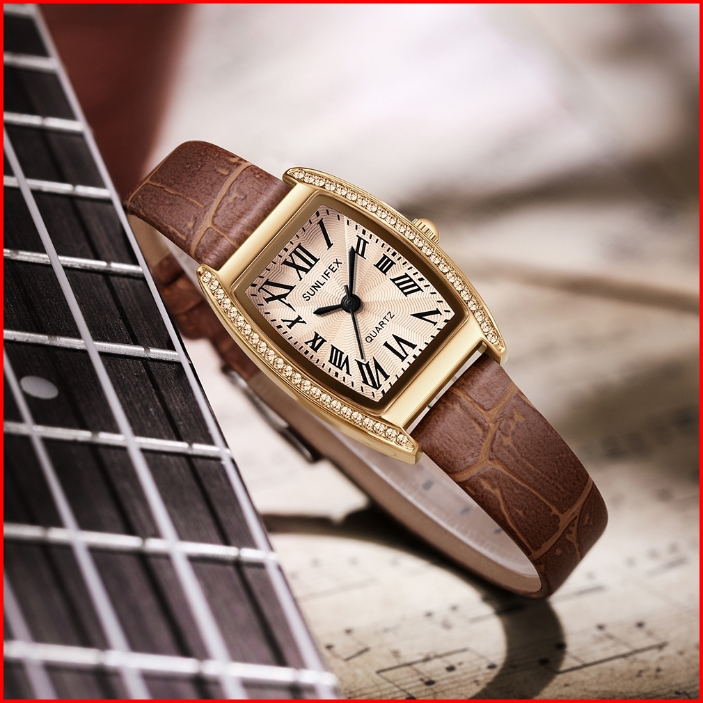 Sunlifex 6010 Jam Tangan Wanita Tali Kulit Anti Air Korea Elegan Cewek Original Watch Kotak Hadiah