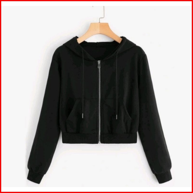 Sweater Hoodie Crop Zipper Wanita Premium Kekinian