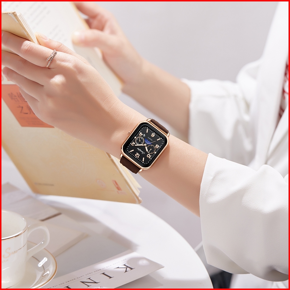 Sunlifex 5009 Jam Tangan Wanita Korea Kasual Bisnis Antik Cewek Persegi Kuarsa Anti Air Tali Kulit