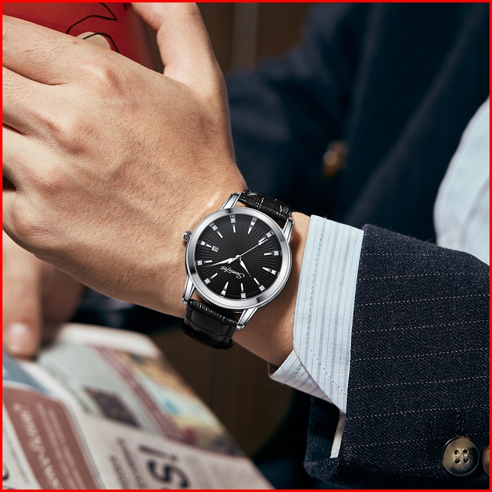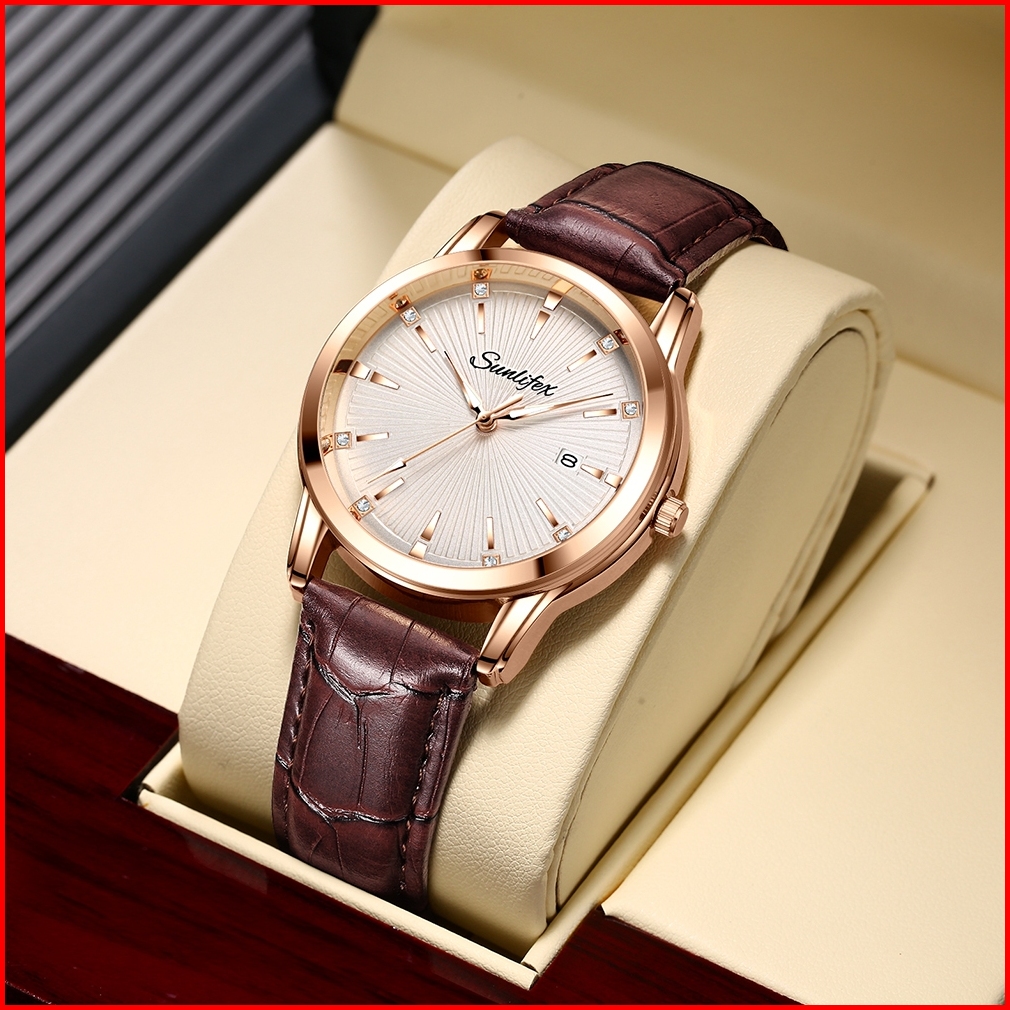 Sunlifex 7006 Jam Tangan Pria Mode Bisnis Anti Air Kalender Kuarsa Tali Kulit Jam Tangan Cowok New