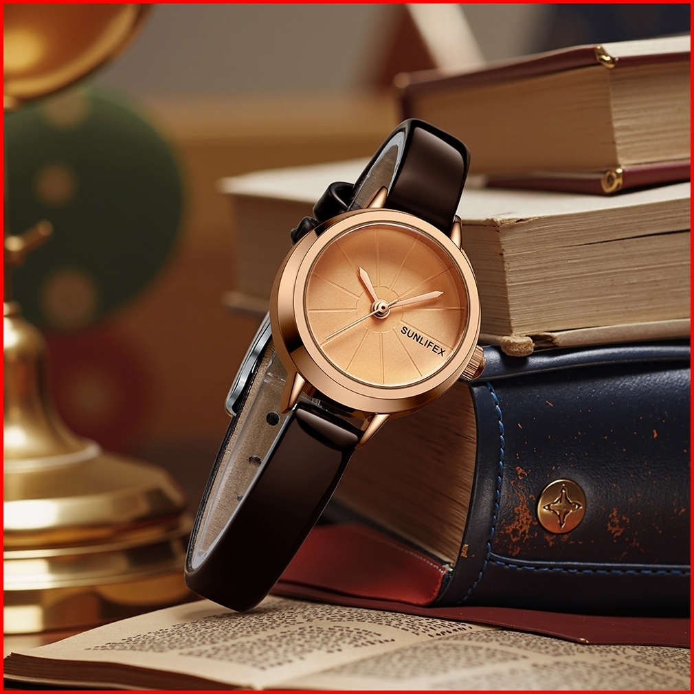 Sunlifex 3343 Jam Tangan Wanita Korea Kasual Elegan Kecil Anti Air Tali Kulit Jam Tangan Cewek New