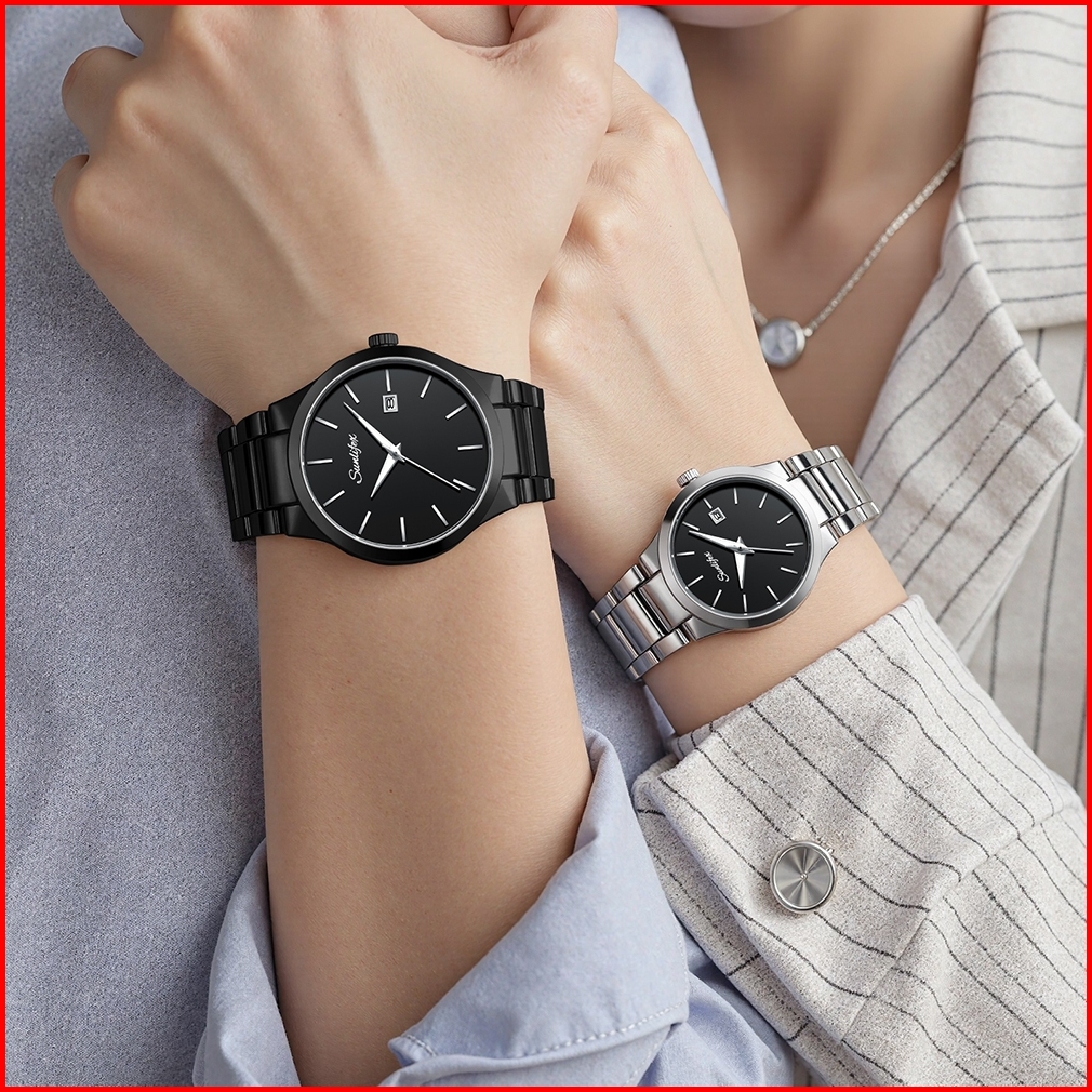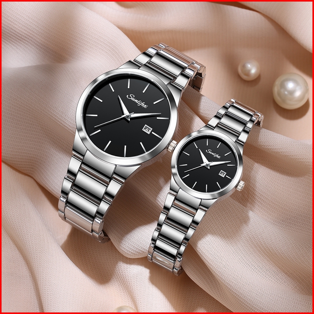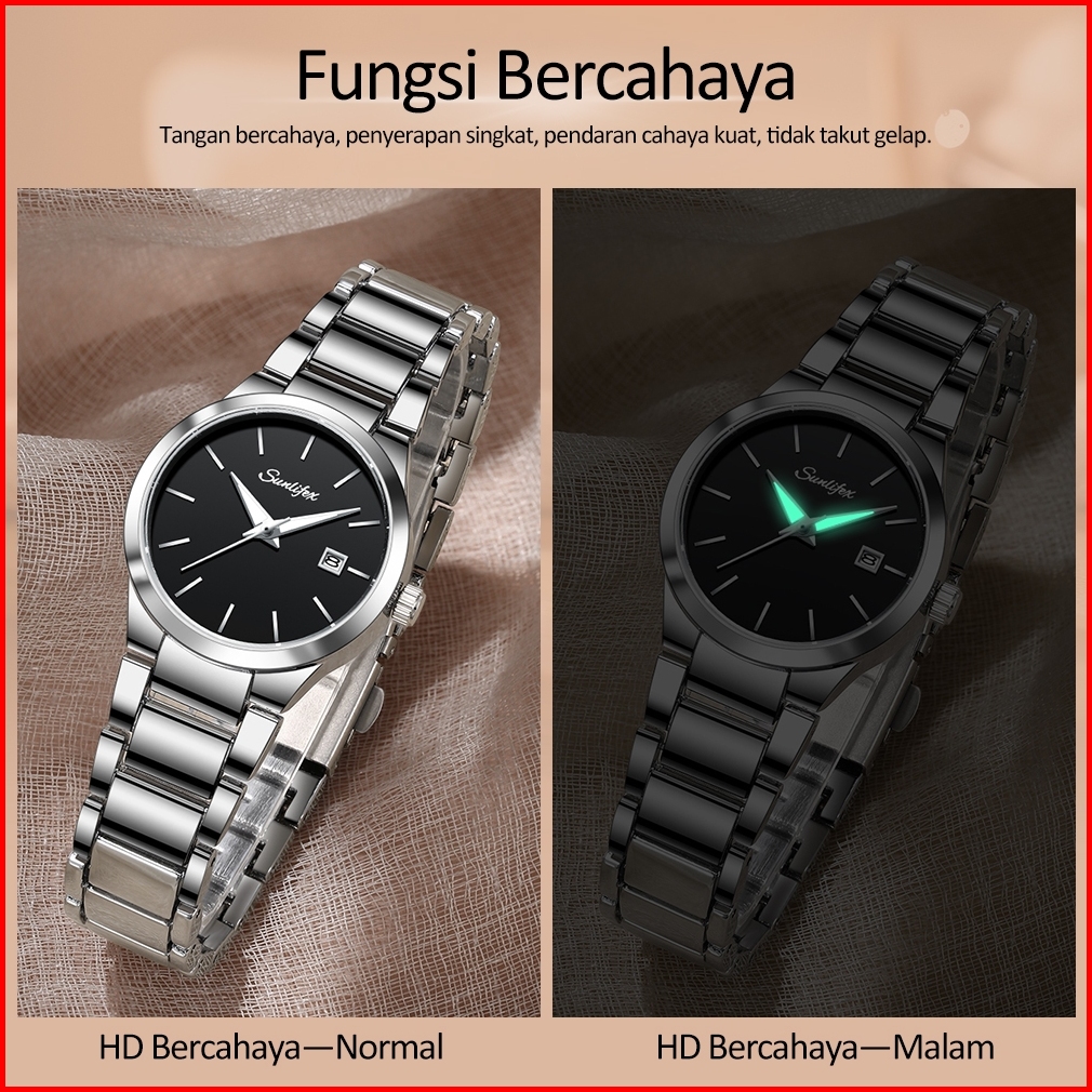 Sunlifex Jam Tangan Couple Original Tanggal Luminous Santai Tali Stainless Steel Jam Tangan Pria Wanita