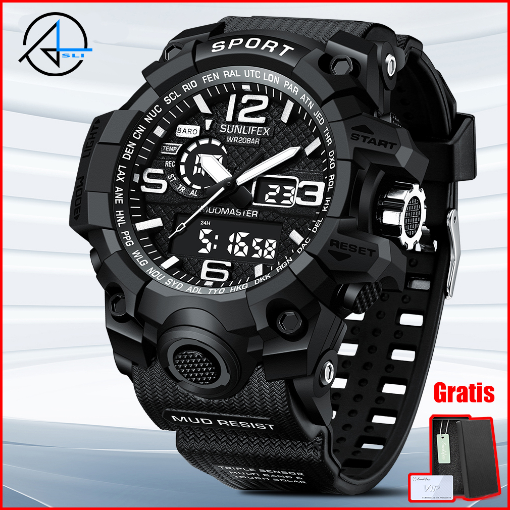 Jam Tangan Pria Digital Sunlifex Brand D001 Digital Analog Olahraga Kasual Tali Silikon Jam Tangan Cowok