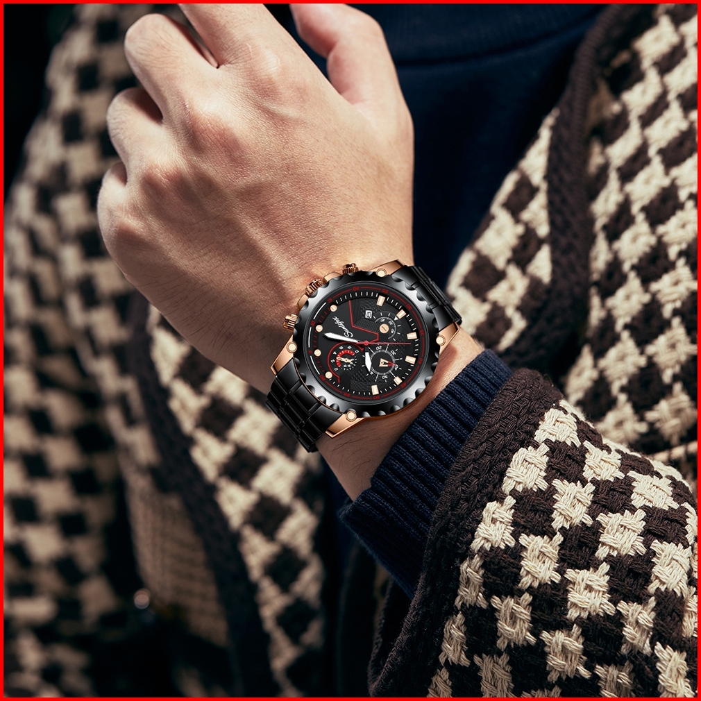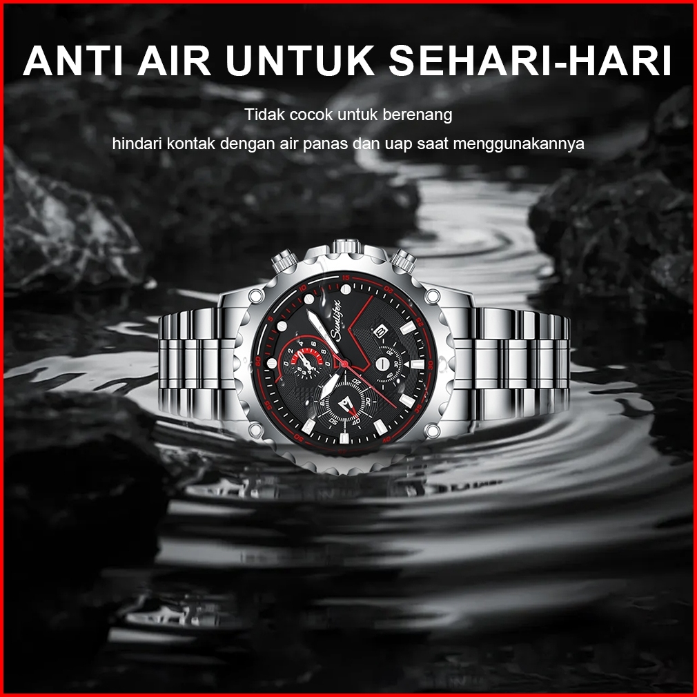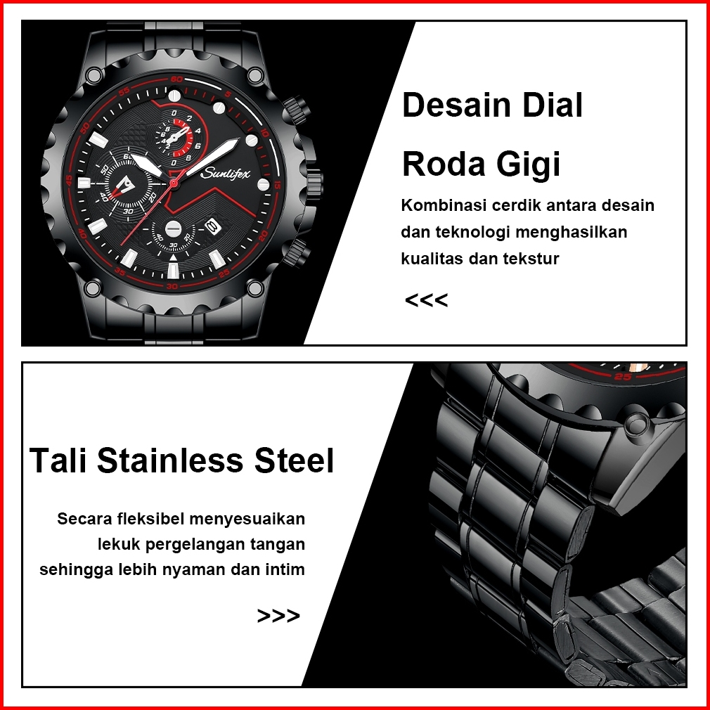 Sunlifex 9032 Jam Tangan Pria Kalender Anti Air Tali Stainless Steel Keren Olahraga Cowok New Watch