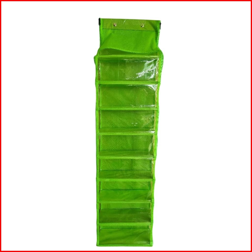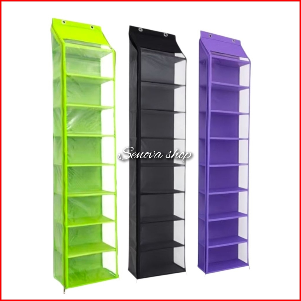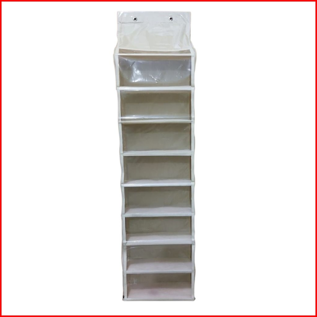 Rak Sepatu Gantung 9 Susun Polos Jumbo Sleting Kanan Kiri Mika Tebal Alas Triplek