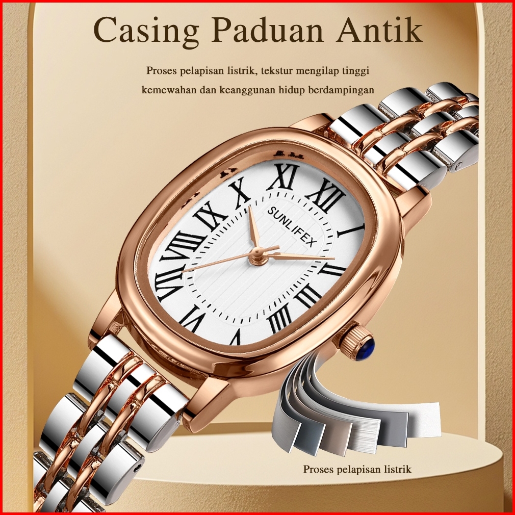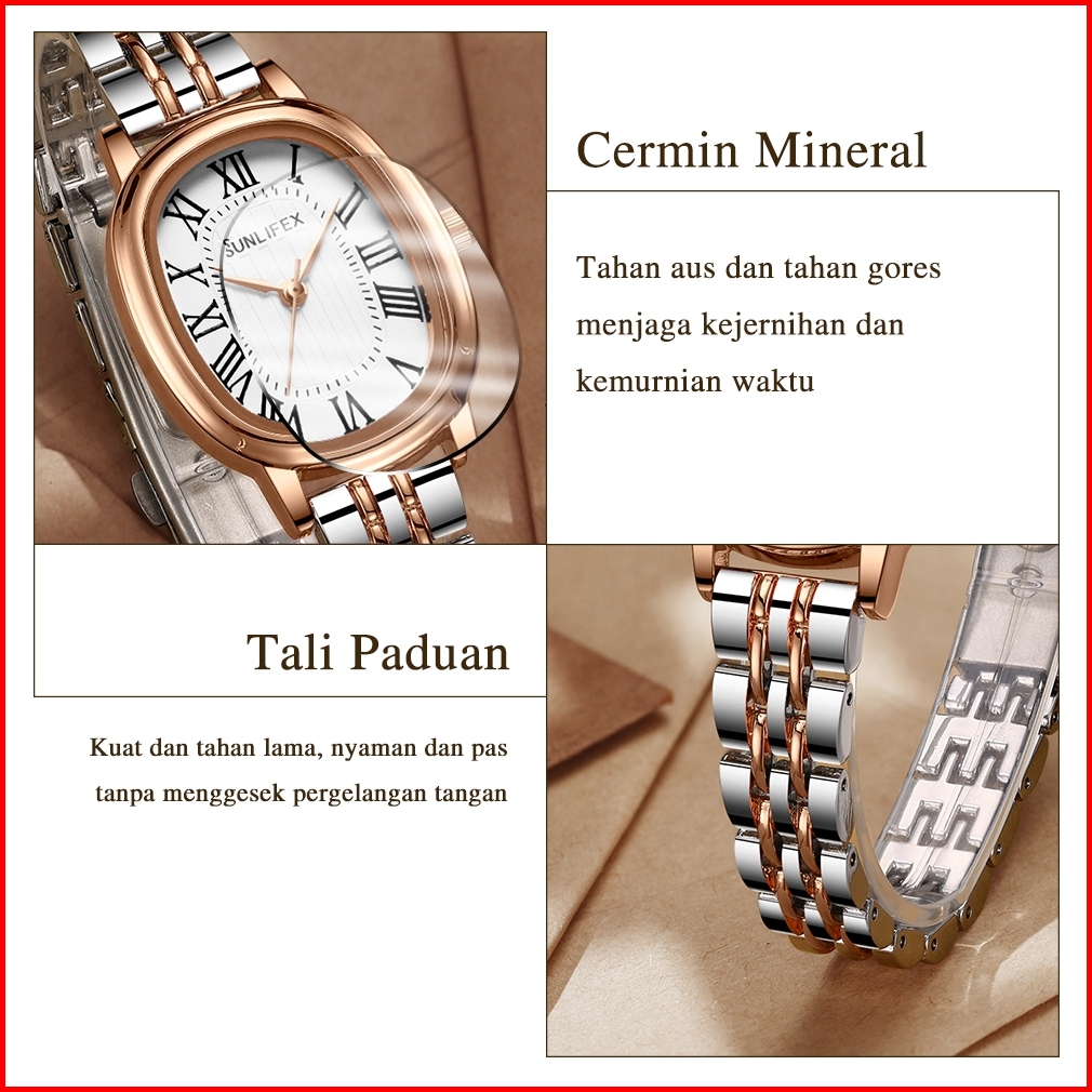 Sunlifex 5997 Jam Tangan Wanita Anti Air Tali Paduan Kuarsa Klasik Mewah Elegan Bisnis Kasual Cewek