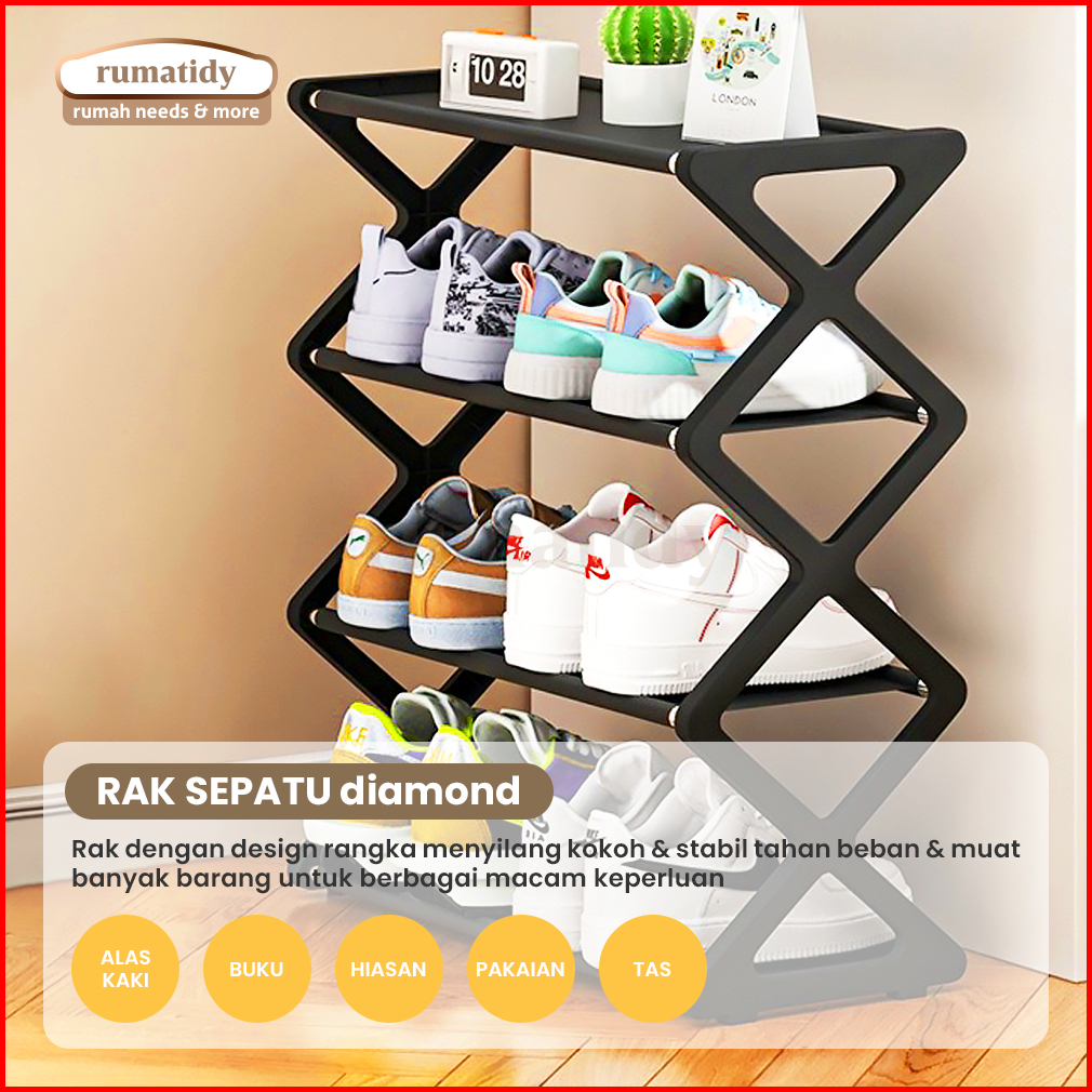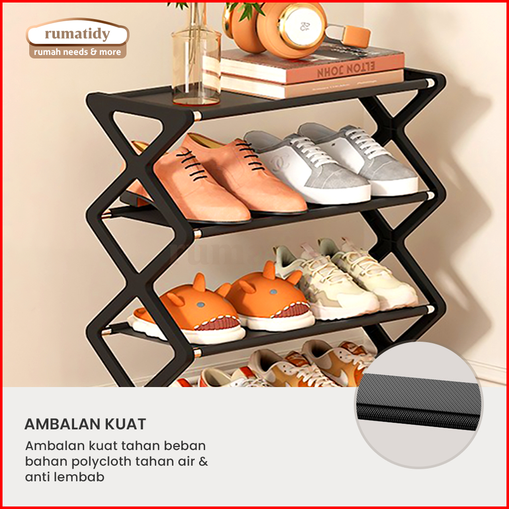 Rumatidy - Rak Sepatu Portable Serbaguna Stainless Steel 4 5 Susun Model Zig Zag Anti Karat Kokoh