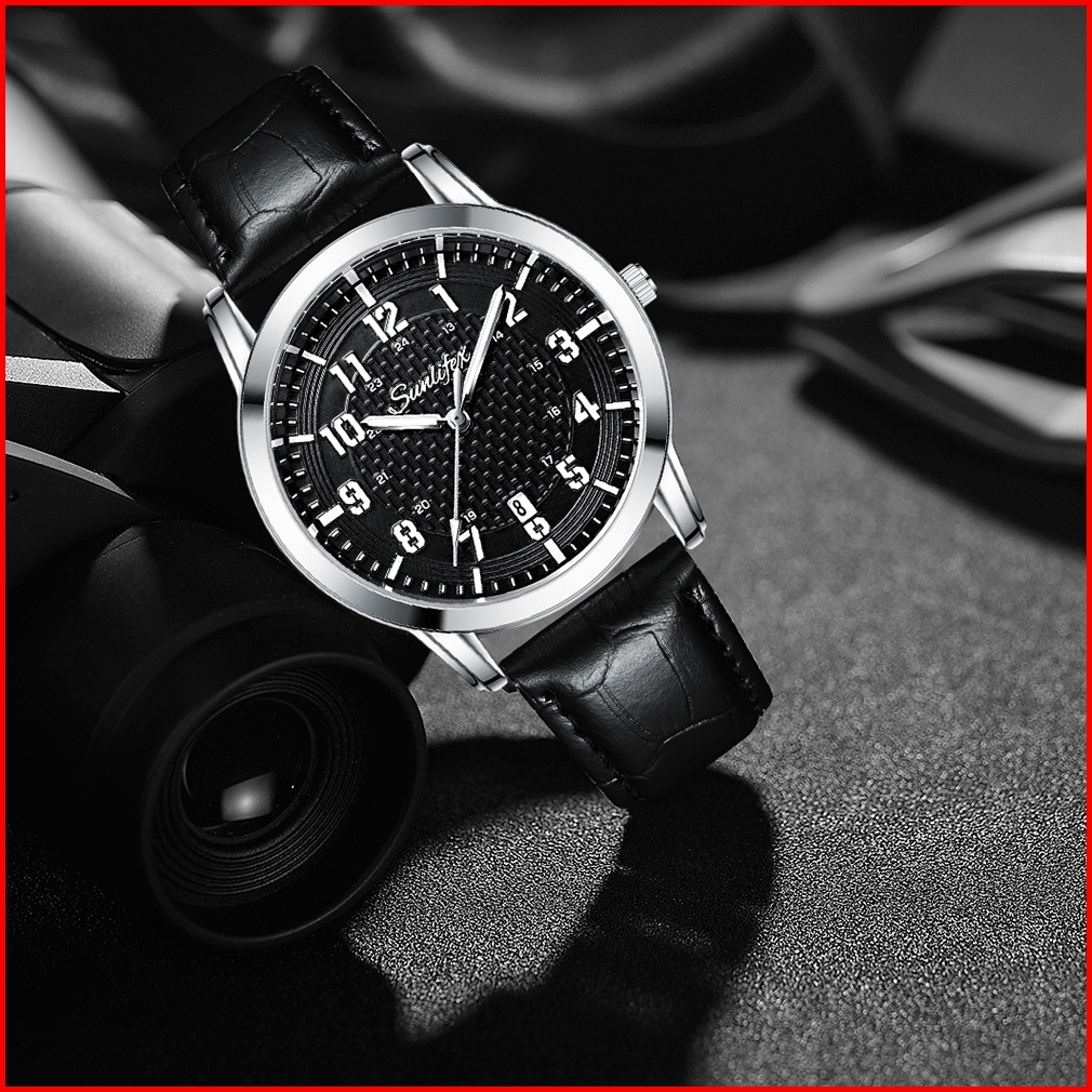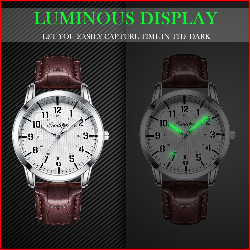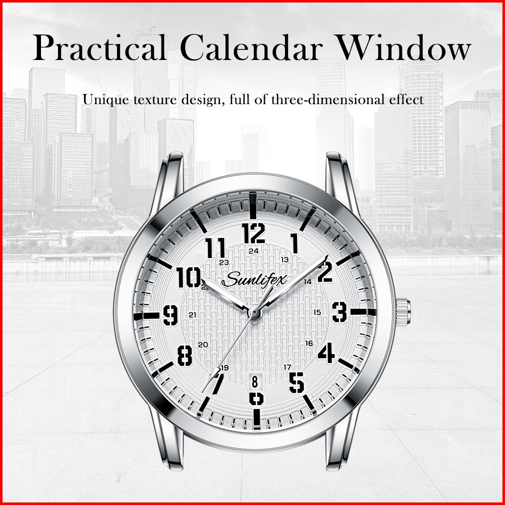 Sunlifex Jam Tangan Pria Anti Air Original Display Kuarsa Calendar Tali Kulit Jam Tangan Cowok Klasik