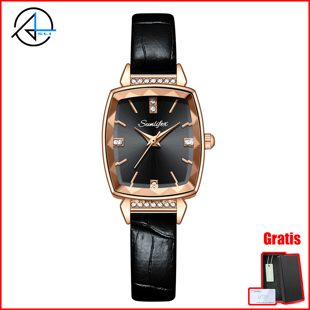 Sunlifex Jam Tangan Wanita Original 100 Berlian Dial Tali Kulit Anti Air Kuarsa Jam Tangan Cewek 8006