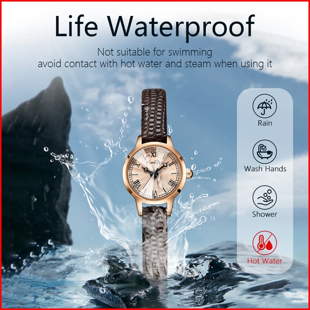 Sunlifex Jam Tangan Wanita Kuarsa Elegan Korea Anti Air Kasual Tali Kulit Jam Tangan Cewek Original 3342