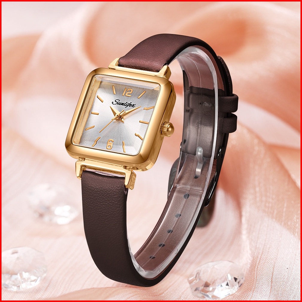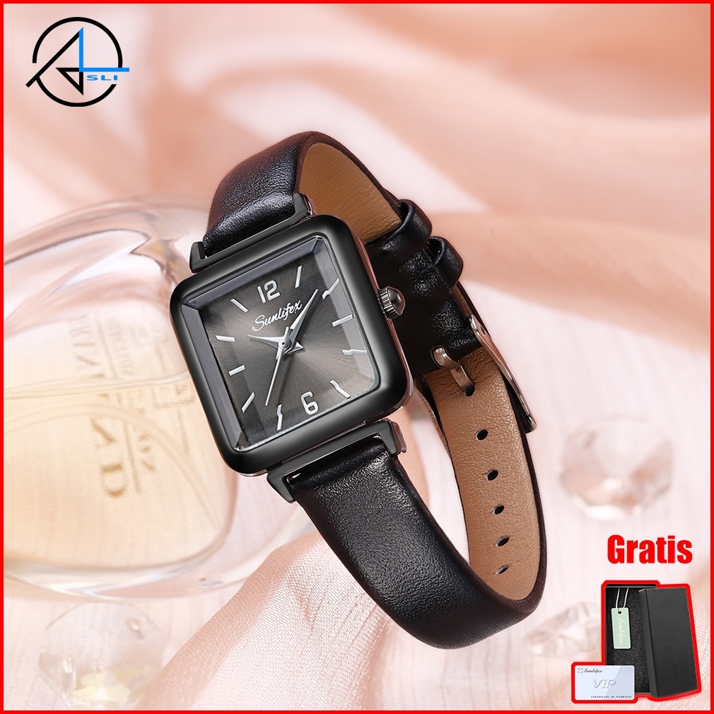 Sunlifex Jam Tangan Wanita Anggun Original Kecil Tali Kulit Anti Air Kuarsa Jam Tangan Cewek 8004