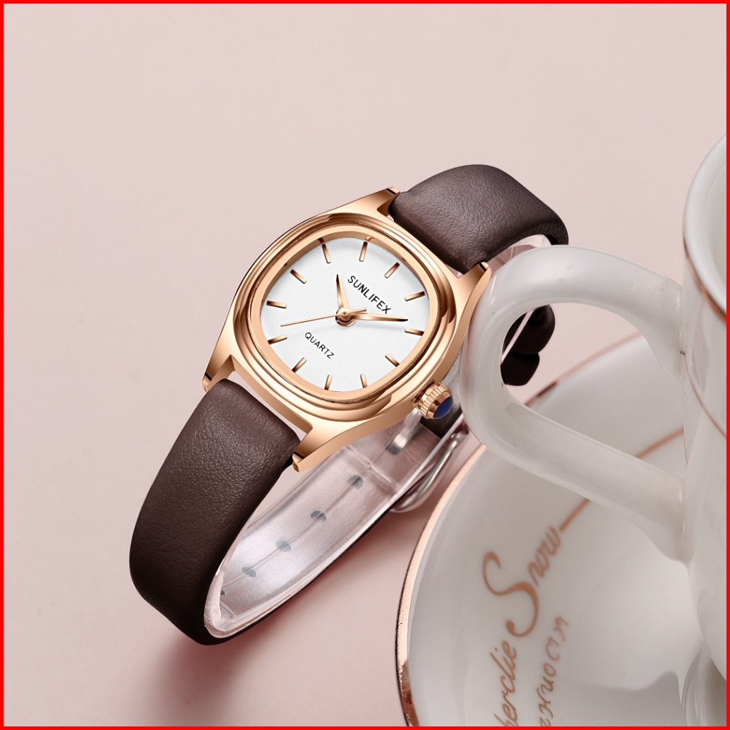Sunlifex Jam Tangan Wanita Original 6004 Elegan Korea Tali Kulit Jam Tangan Cewek