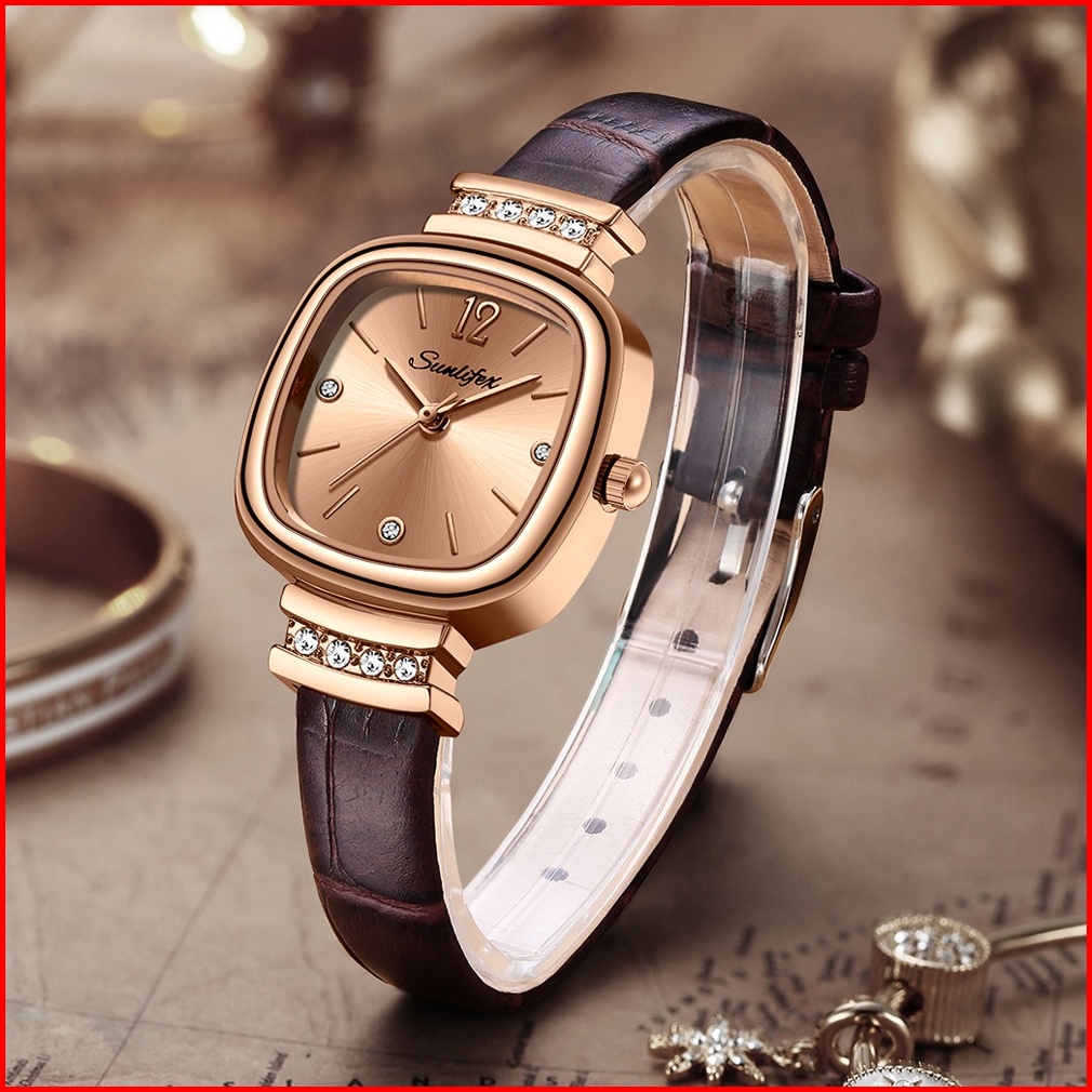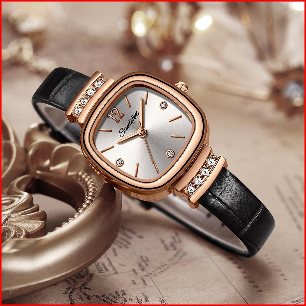 Sunlifex Jam Tangan Wanita 8001 Gaya Retro Korea Tali Kulit Kuarsa Jam Tangan Cewek