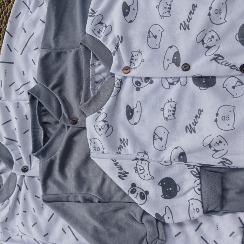 3 Pcs Jumpsuit Bayi Newborn 0–3 Bulan – Full Motif Lucu, Tebal, Lembut, Kancing Depan, Baju Tidur Bayi Terbaru