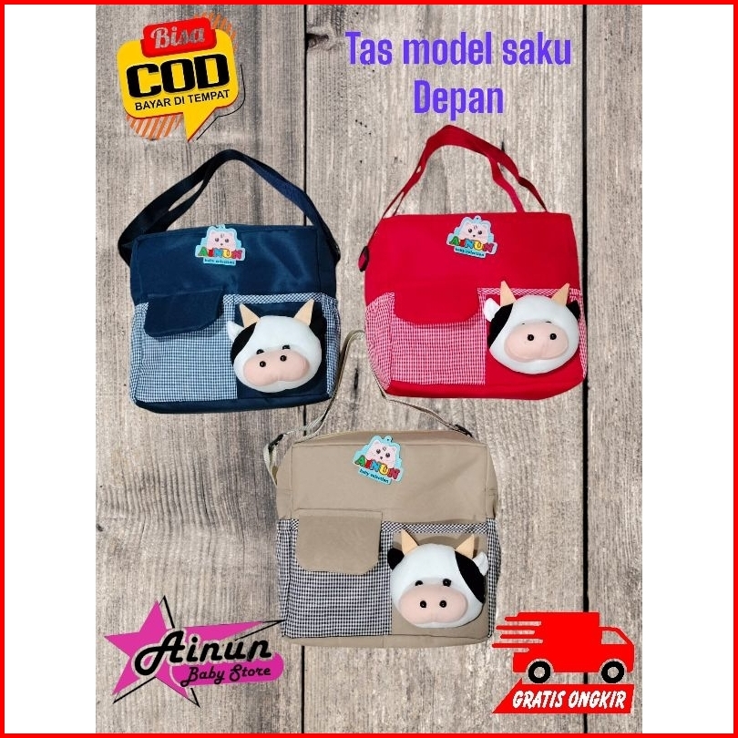 Promo Tas Bayi Dengan Saku Depan Tutup Dengan Tambahan Boneka Sapi Lucu
