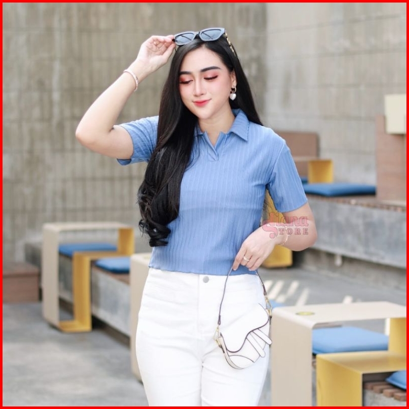 Polo Top Korean Kaos Polo Wanita Slim Fit