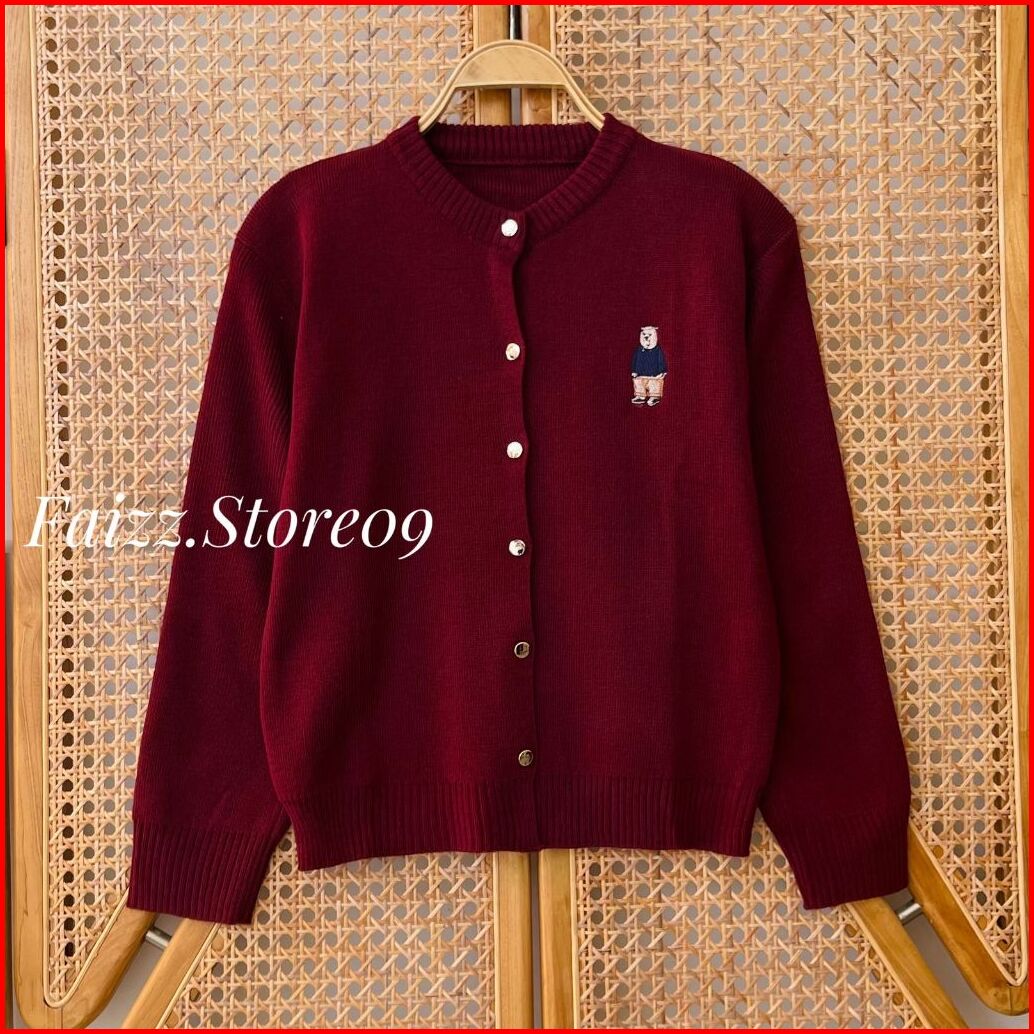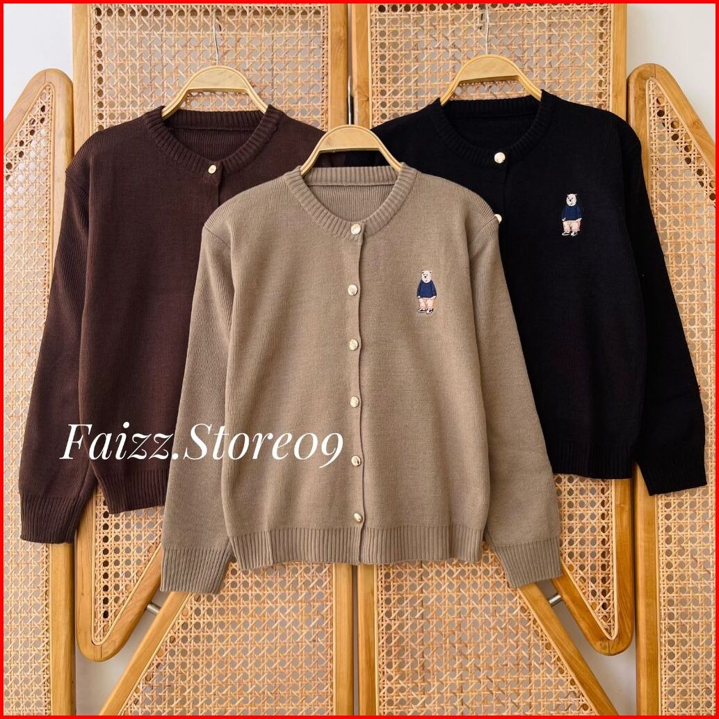 Beary Cardy Knit Bear - Atasan Cardigan Rajut Wanita Kancing Motif Bordir Beruang Simple Bahan Lembut Korean Style