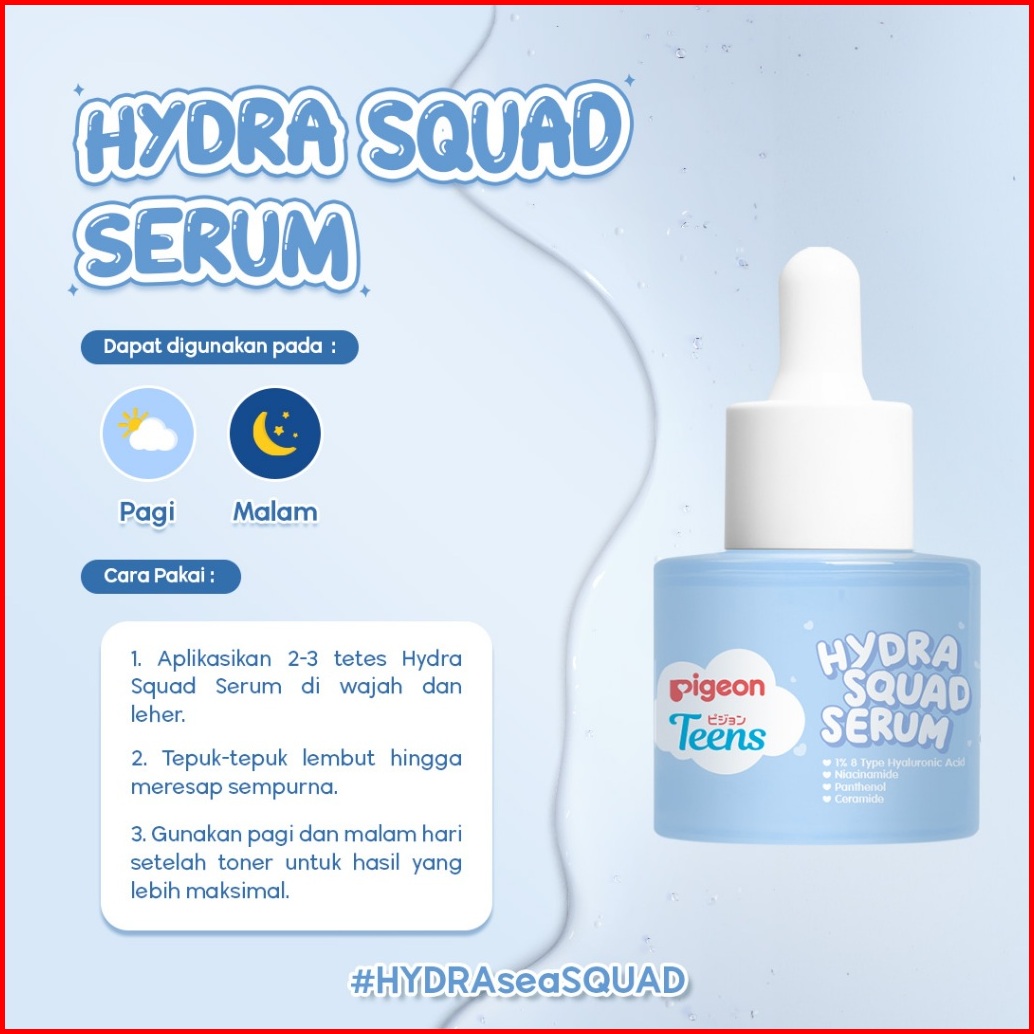 Pigeon Teens Hydra Squad Serum Serum Remaja Melembabkan Hyaluronic Acic