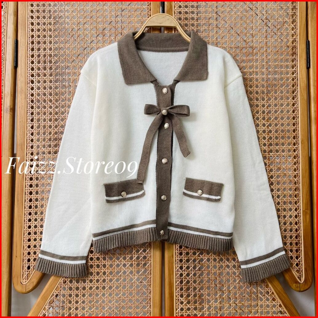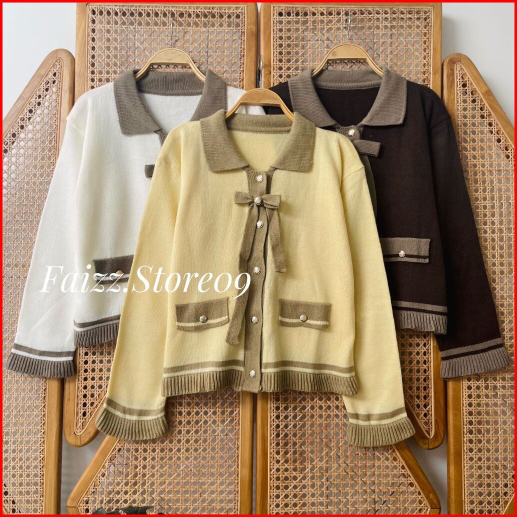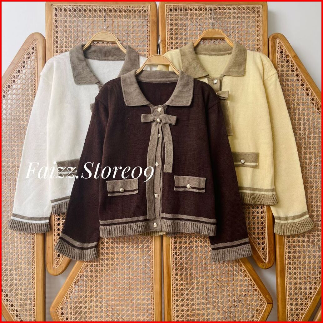 Tarri Cardy Knitwear - Atasan Cardigan Rajut Kancing Wanita Motif Tali Pita Baju Lucu Korean Style Premium